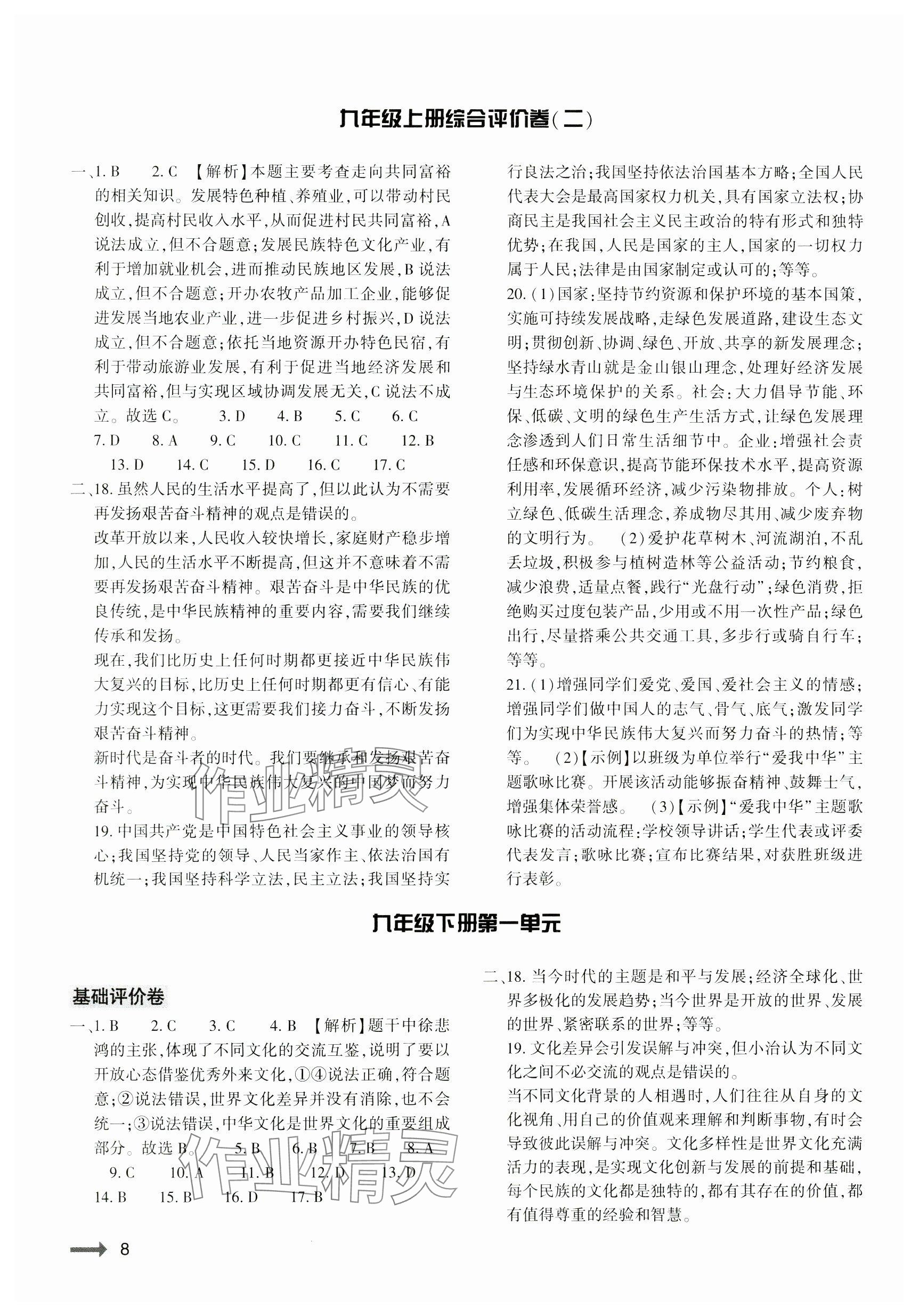 注:目前有些书本章节名称可能整理的还不是很完善,但都是按照顺序排列的,请同学们按照顺序仔细查找。练习册 2024年节节高大象出版社九年级道德与法治全一册人教版 答案主要是用来给同学们做完题方便对答案用的,请勿直接抄袭。