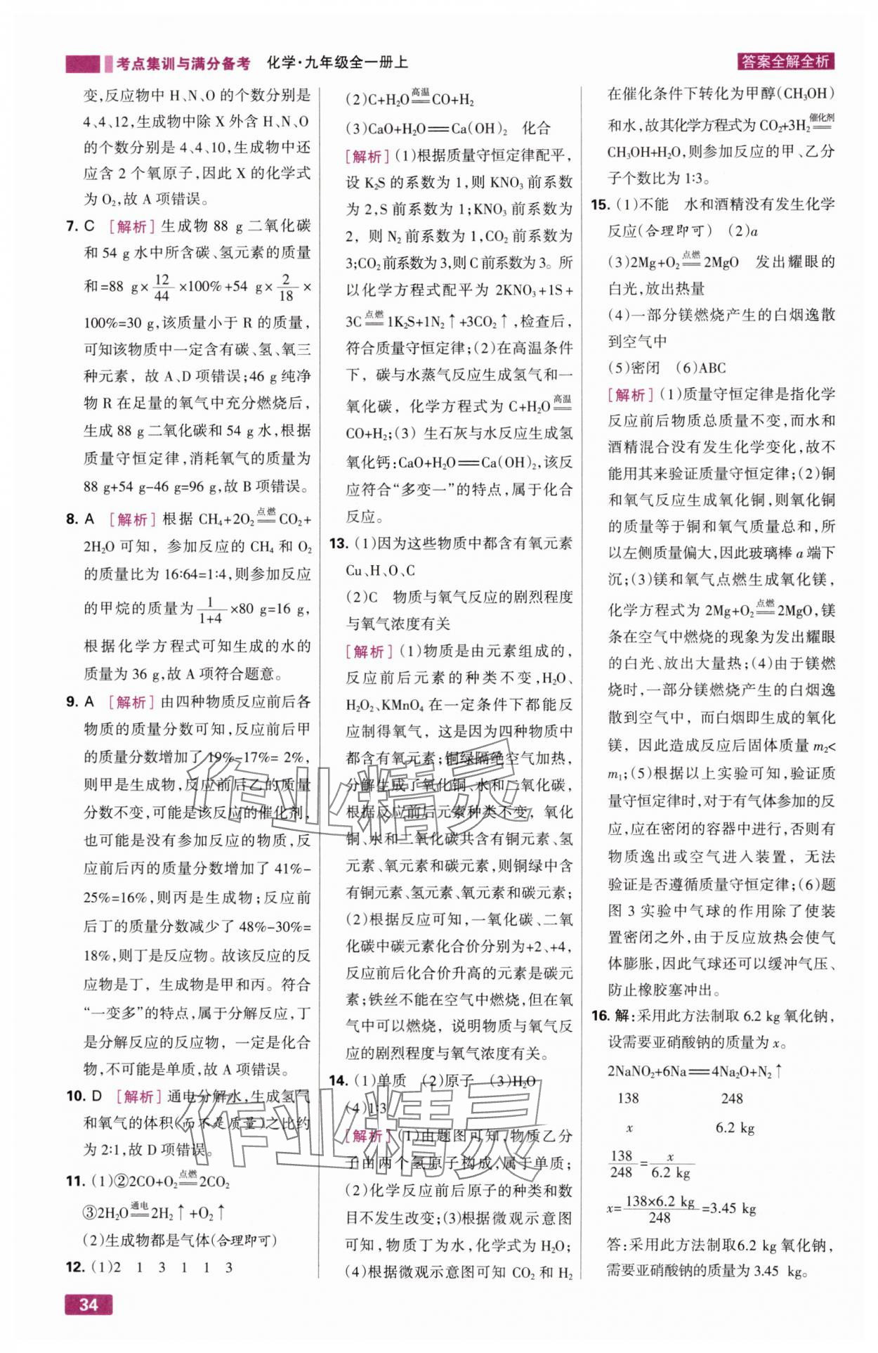 2024年考点集训与满分备考九年级化学全一册上人教版