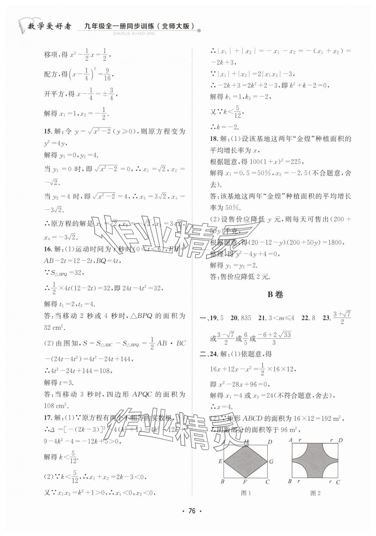 注:目前有些书本章节名称可能整理的还不是很完善,但都是按照顺序排列的,请同学们按照顺序仔细查找。练习册 2024年数学爱好者同步训练九年级全一册北师大版 答案主要是用来给同学们做完题方便对答案用的,请勿直接抄袭。