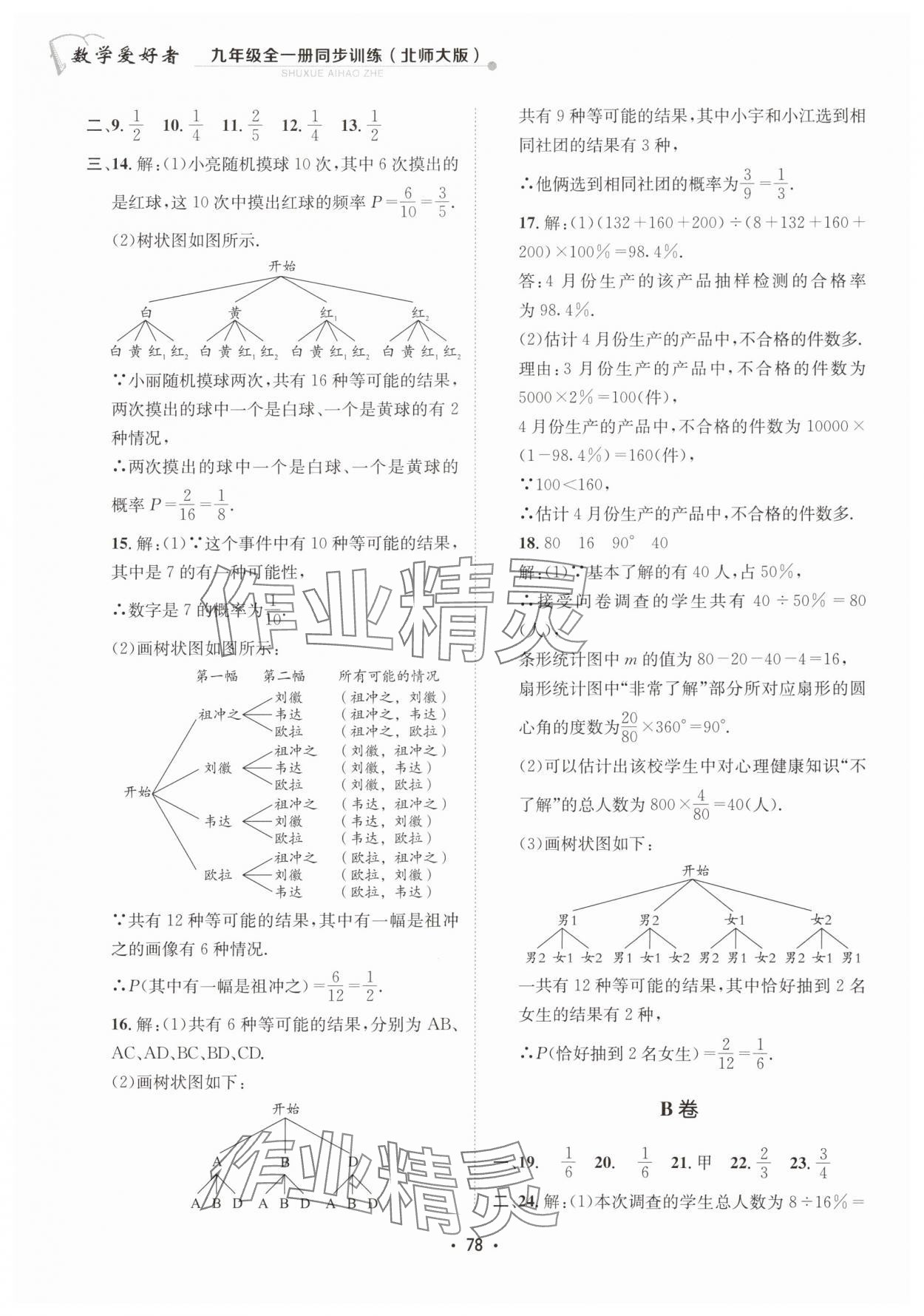 注:目前有些书本章节名称可能整理的还不是很完善,但都是按照顺序排列的,请同学们按照顺序仔细查找。练习册 2024年数学爱好者同步训练九年级全一册北师大版 答案主要是用来给同学们做完题方便对答案用的,请勿直接抄袭。
