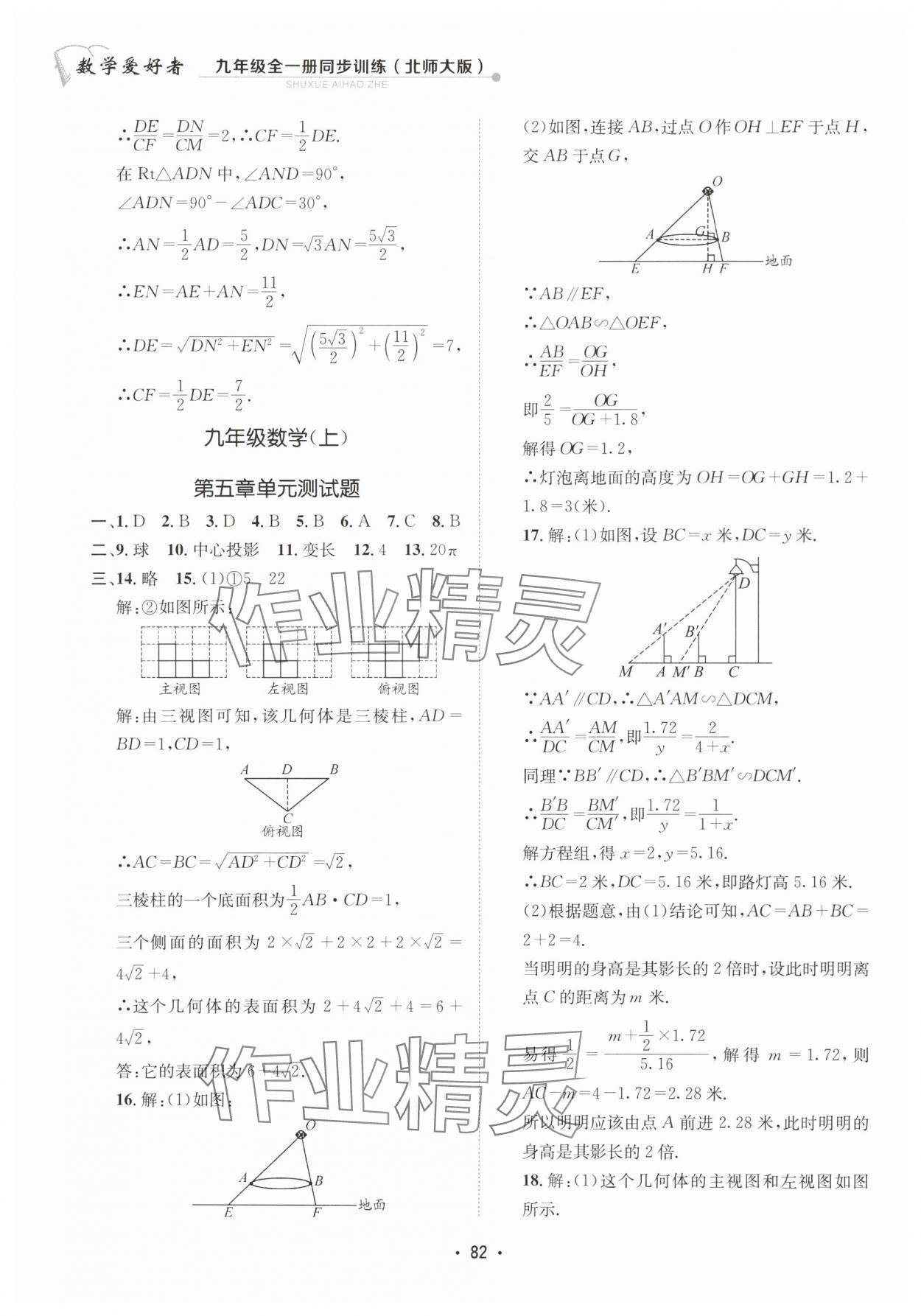 注:目前有些书本章节名称可能整理的还不是很完善,但都是按照顺序排列的,请同学们按照顺序仔细查找。练习册 2024年数学爱好者同步训练九年级全一册北师大版 答案主要是用来给同学们做完题方便对答案用的,请勿直接抄袭。