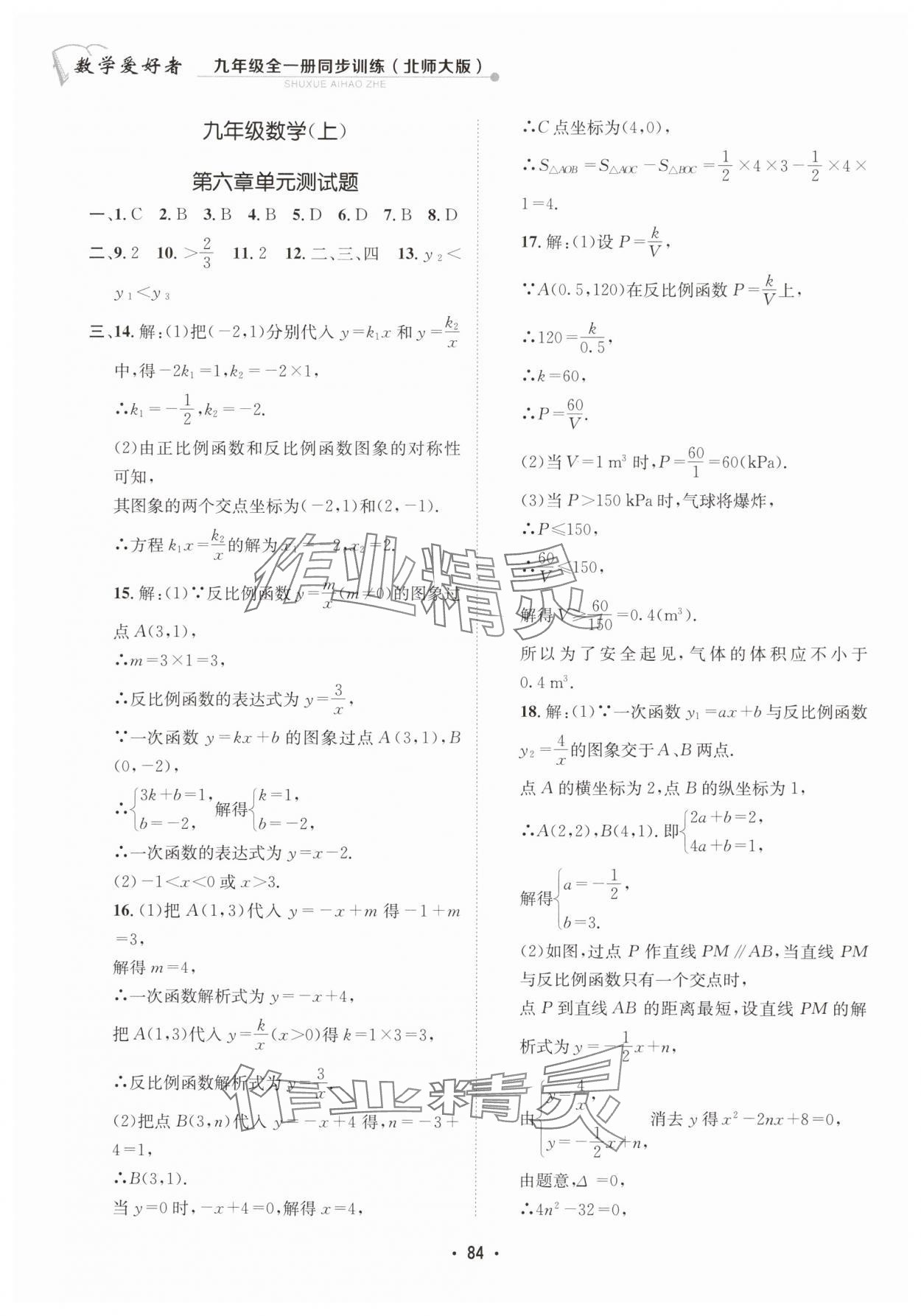 注:目前有些书本章节名称可能整理的还不是很完善,但都是按照顺序排列的,请同学们按照顺序仔细查找。练习册 2024年数学爱好者同步训练九年级全一册北师大版 答案主要是用来给同学们做完题方便对答案用的,请勿直接抄袭。