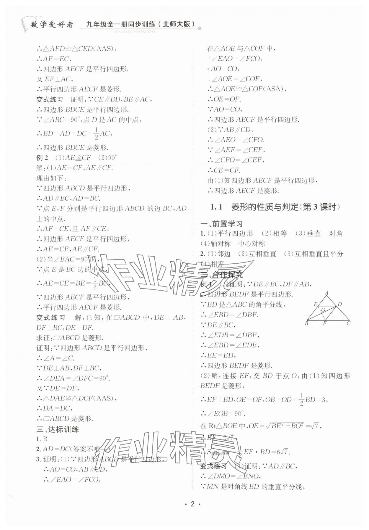 注:目前有些书本章节名称可能整理的还不是很完善,但都是按照顺序排列的,请同学们按照顺序仔细查找。练习册 2024年数学爱好者同步训练九年级全一册北师大版 答案主要是用来给同学们做完题方便对答案用的,请勿直接抄袭。