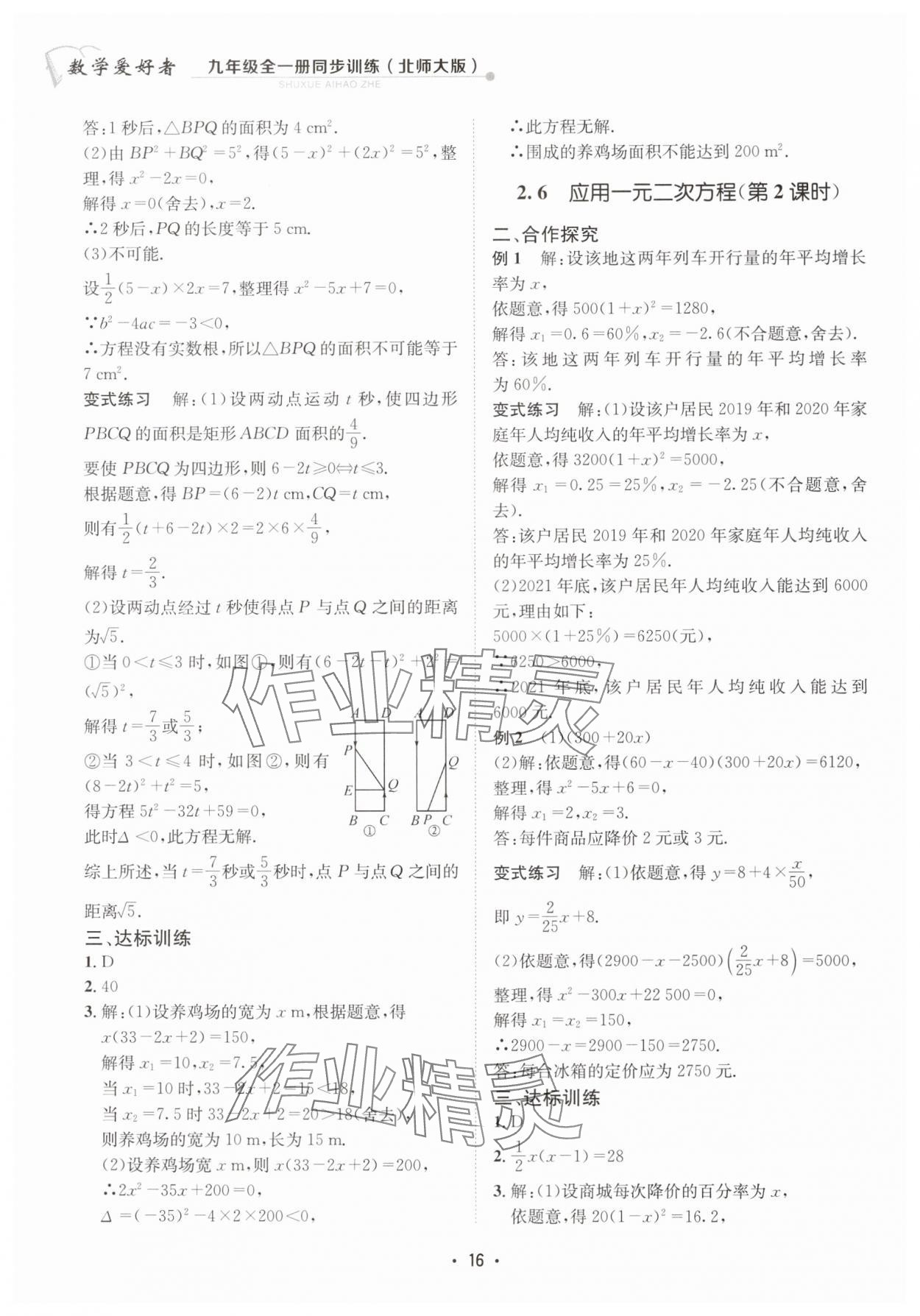 注:目前有些书本章节名称可能整理的还不是很完善,但都是按照顺序排列的,请同学们按照顺序仔细查找。练习册 2024年数学爱好者同步训练九年级全一册北师大版 答案主要是用来给同学们做完题方便对答案用的,请勿直接抄袭。