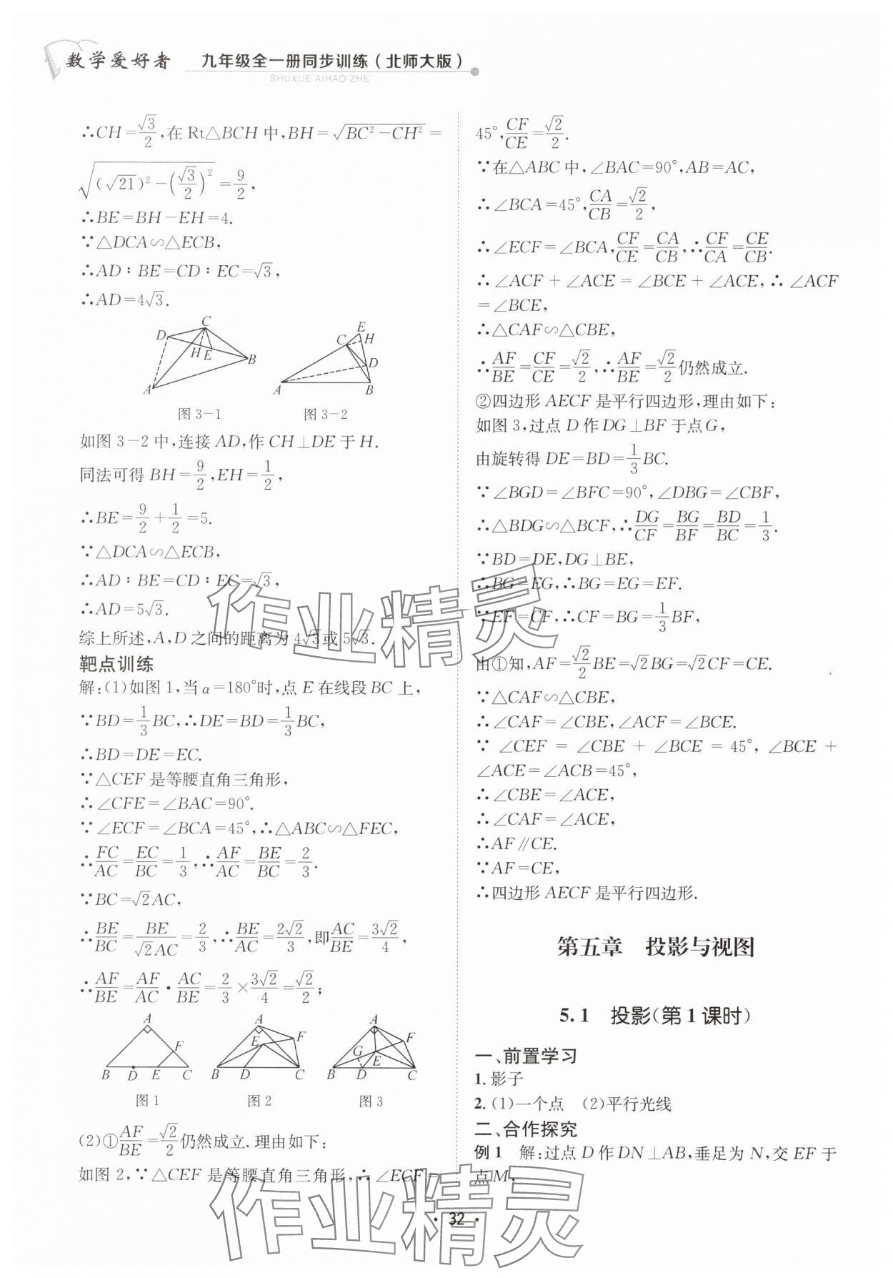 注:目前有些书本章节名称可能整理的还不是很完善,但都是按照顺序排列的,请同学们按照顺序仔细查找。练习册 2024年数学爱好者同步训练九年级全一册北师大版 答案主要是用来给同学们做完题方便对答案用的,请勿直接抄袭。