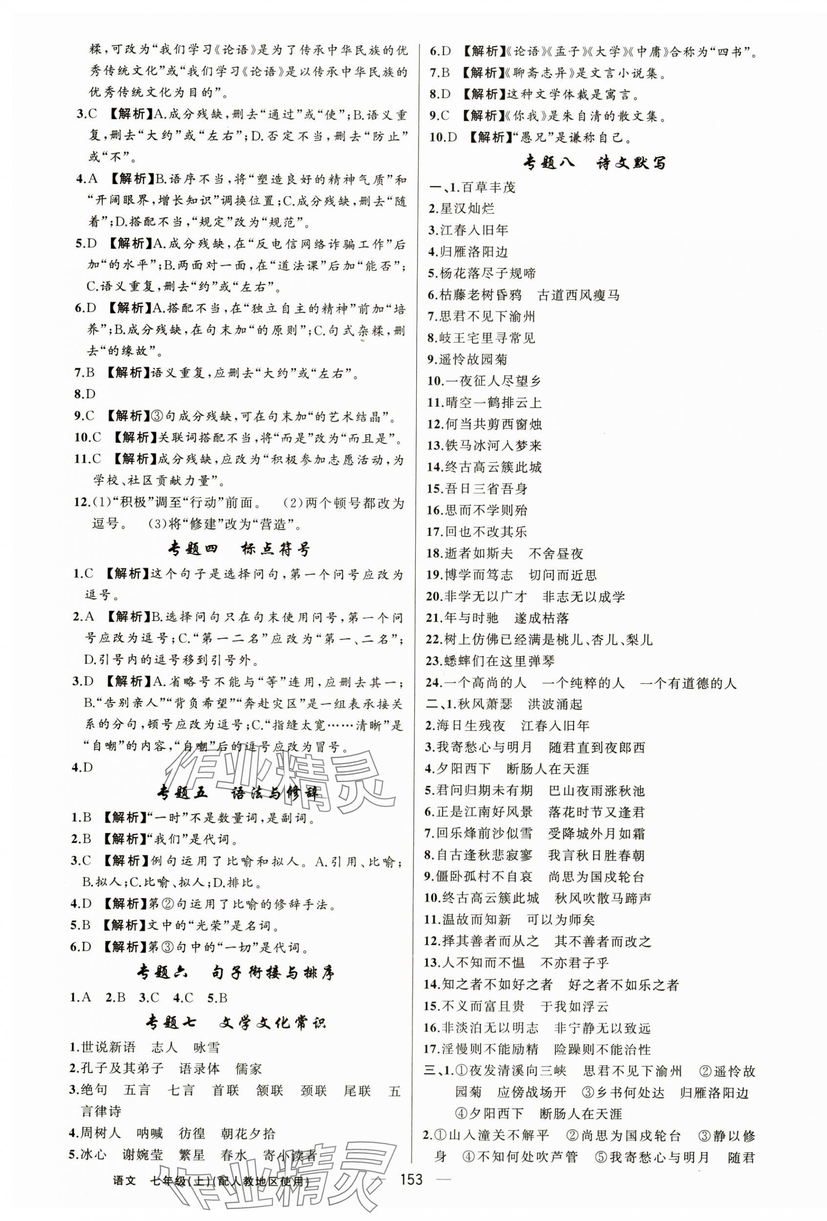 注:目前有些书本章节名称可能整理的还不是很完善,但都是按照顺序排列的,请同学们按照顺序仔细查找。练习册 2024年黄冈金牌之路练闯考七年级语文上册人教版 答案主要是用来给同学们做完题方便对答案用的,请勿直接抄袭。