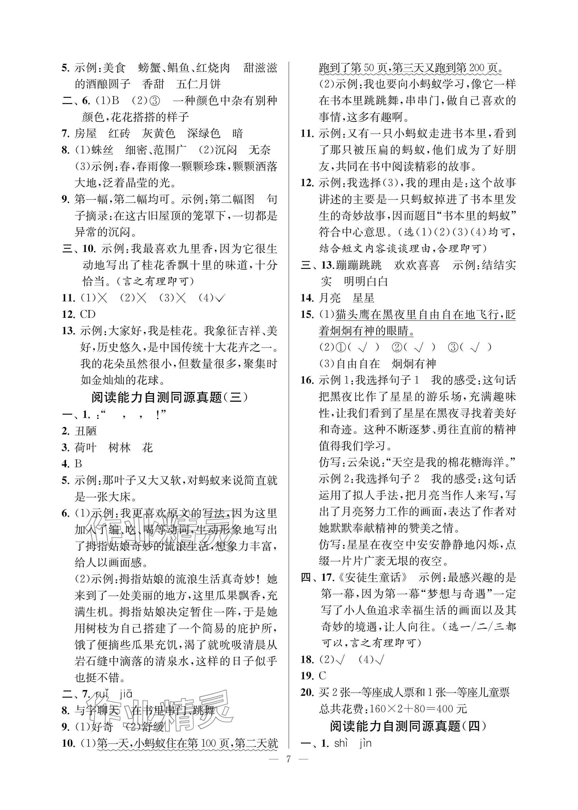 注:目前有些书本章节名称可能整理的还不是很完善,但都是按照顺序排列的,请同学们按照顺序仔细查找。练习册 2024年悦读趣联吧三年级语文上册人教版 答案主要是用来给同学们做完题方便对答案用的,请勿直接抄袭。