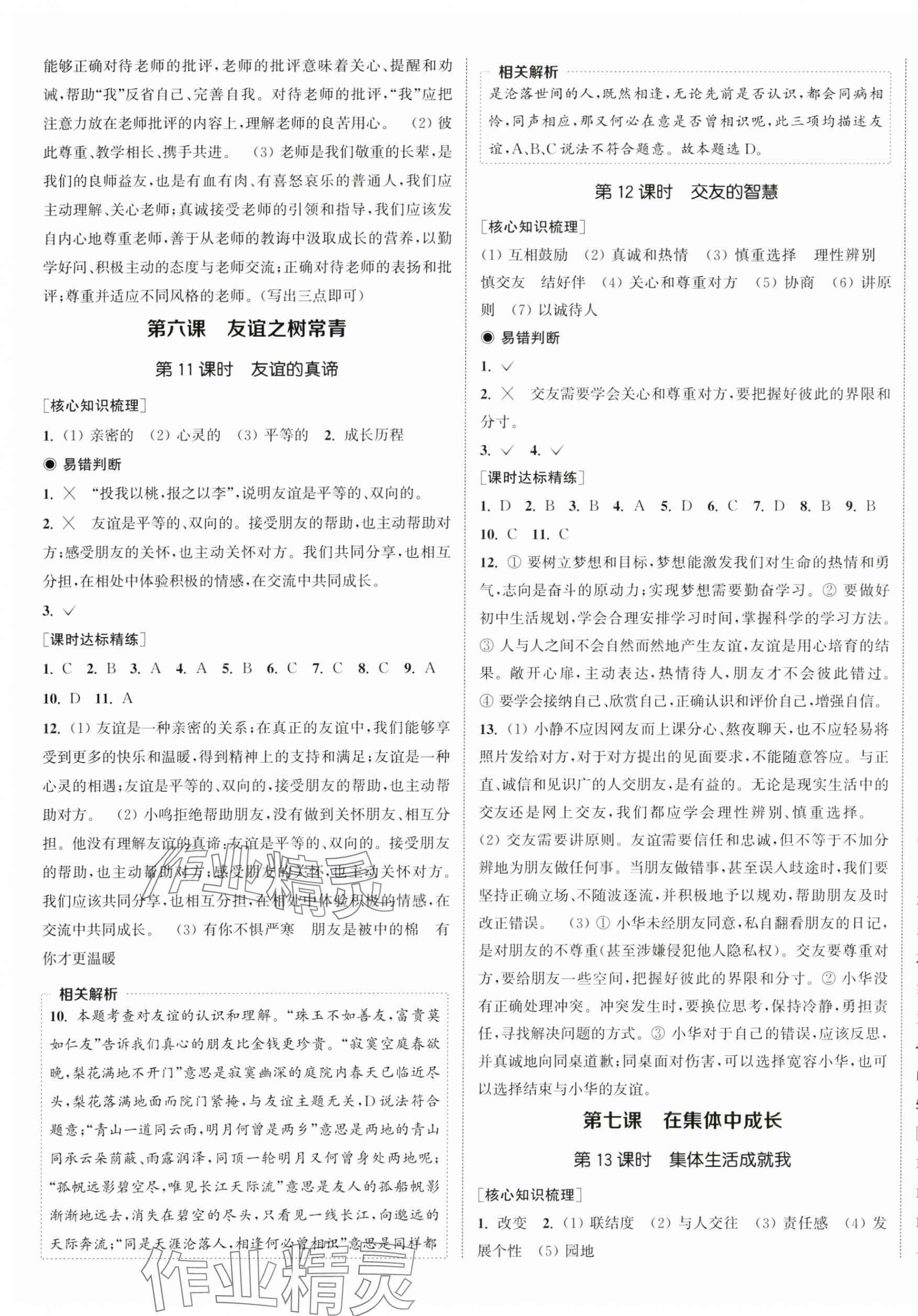 2024年通城学典课时作业本七年级道德与法治上册人教版