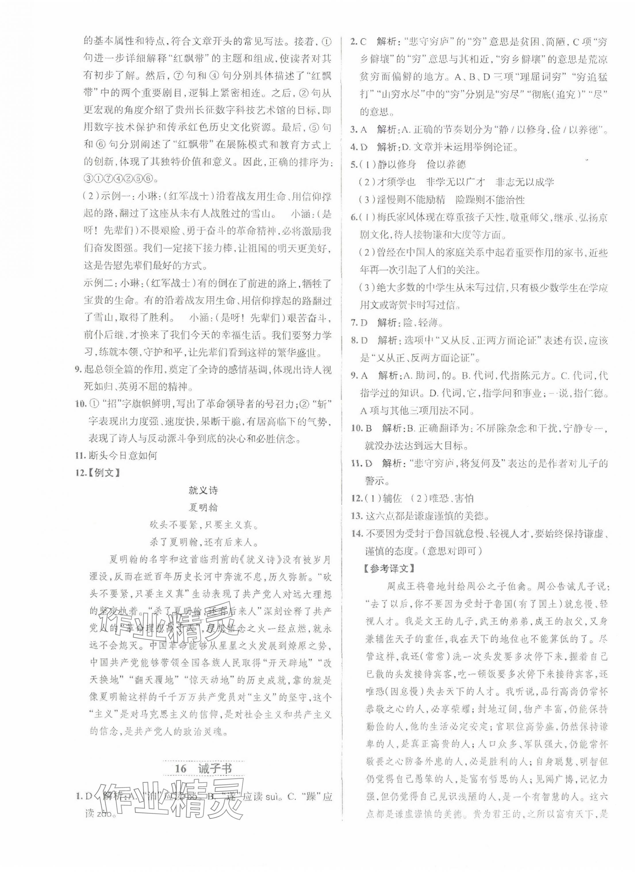 注:目前有些书本章节名称可能整理的还不是很完善,但都是按照顺序排列的,请同学们按照顺序仔细查找。练习册 2024年名校课堂贵州人民出版社七年级语文上册人教版 答案主要是用来给同学们做完题方便对答案用的,请勿直接抄袭。