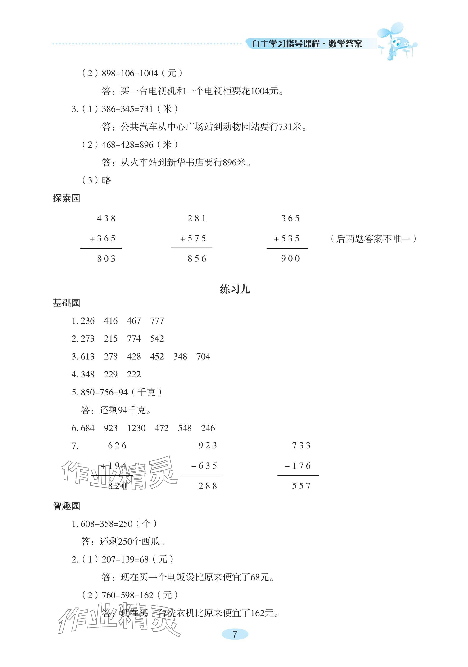 注:目前有些书本章节名称可能整理的还不是很完善,但都是按照顺序排列的,请同学们按照顺序仔细查找。练习册 2024年自主学习指导课程三年级数学上册人教版 答案主要是用来给同学们做完题方便对答案用的,请勿直接抄袭。