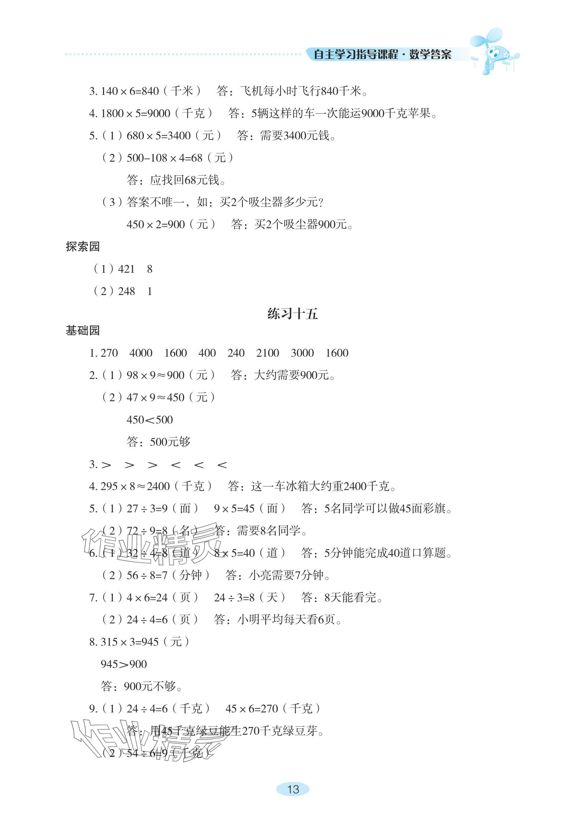 注:目前有些书本章节名称可能整理的还不是很完善,但都是按照顺序排列的,请同学们按照顺序仔细查找。练习册 2024年自主学习指导课程三年级数学上册人教版 答案主要是用来给同学们做完题方便对答案用的,请勿直接抄袭。
