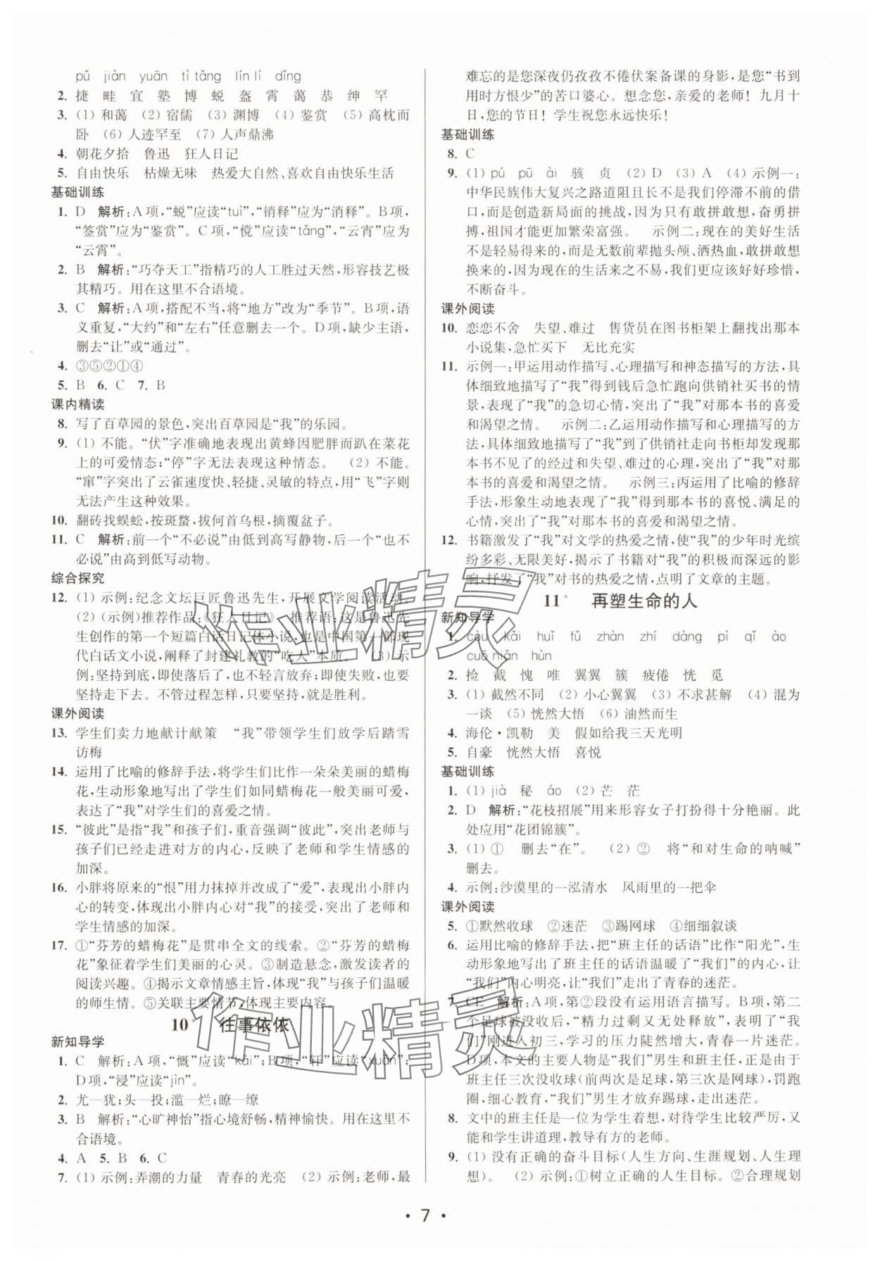 注:目前有些书本章节名称可能整理的还不是很完善,但都是按照顺序排列的,请同学们按照顺序仔细查找。练习册 2024年创新课时作业本七年级语文上册人教版 答案主要是用来给同学们做完题方便对答案用的,请勿直接抄袭。