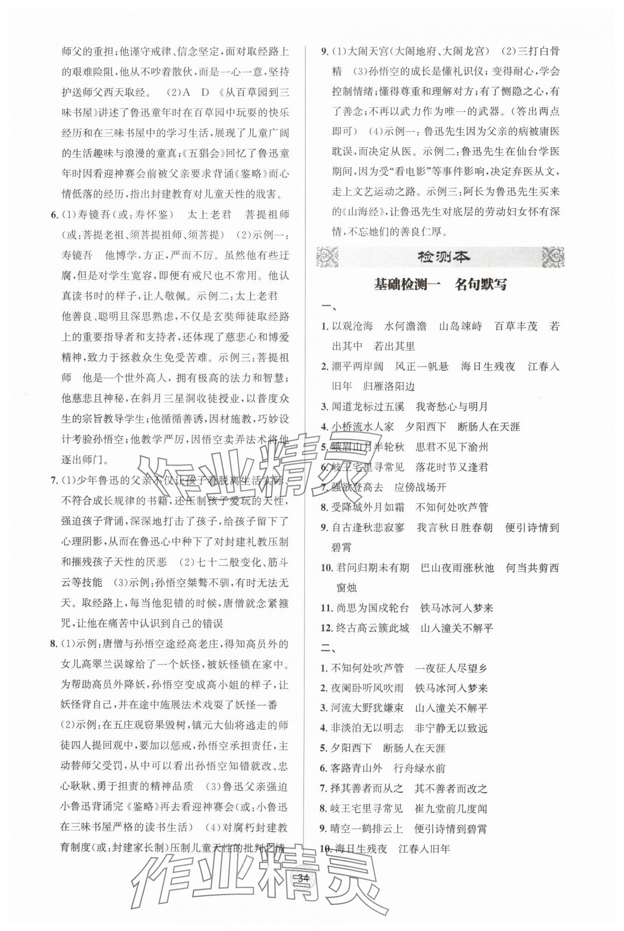 注:目前有些书本章节名称可能整理的还不是很完善,但都是按照顺序排列的,请同学们按照顺序仔细查找。练习册 2024年古诗文与名著阅读七年级语文上册人教版 答案主要是用来给同学们做完题方便对答案用的,请勿直接抄袭。