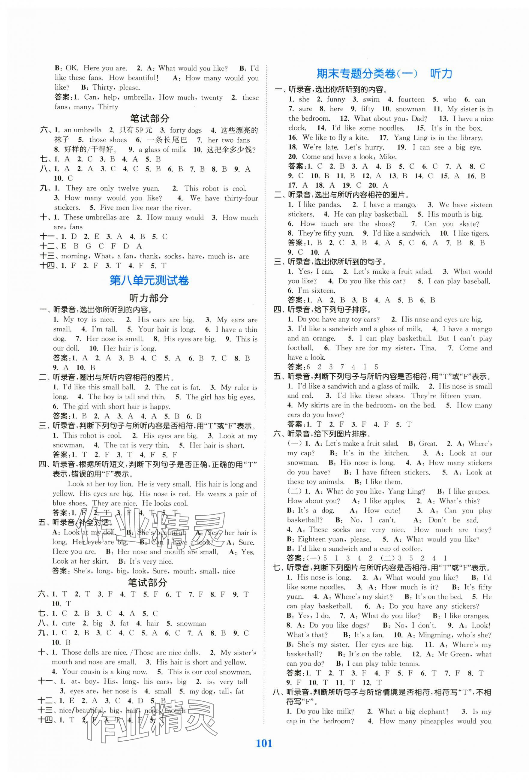 注:目前有些书本章节名称可能整理的还不是很完善,但都是按照顺序排列的,请同学们按照顺序仔细查找。练习册 2024年江苏金考卷四年级英语上册译林版 答案主要是用来给同学们做完题方便对答案用的,请勿直接抄袭。