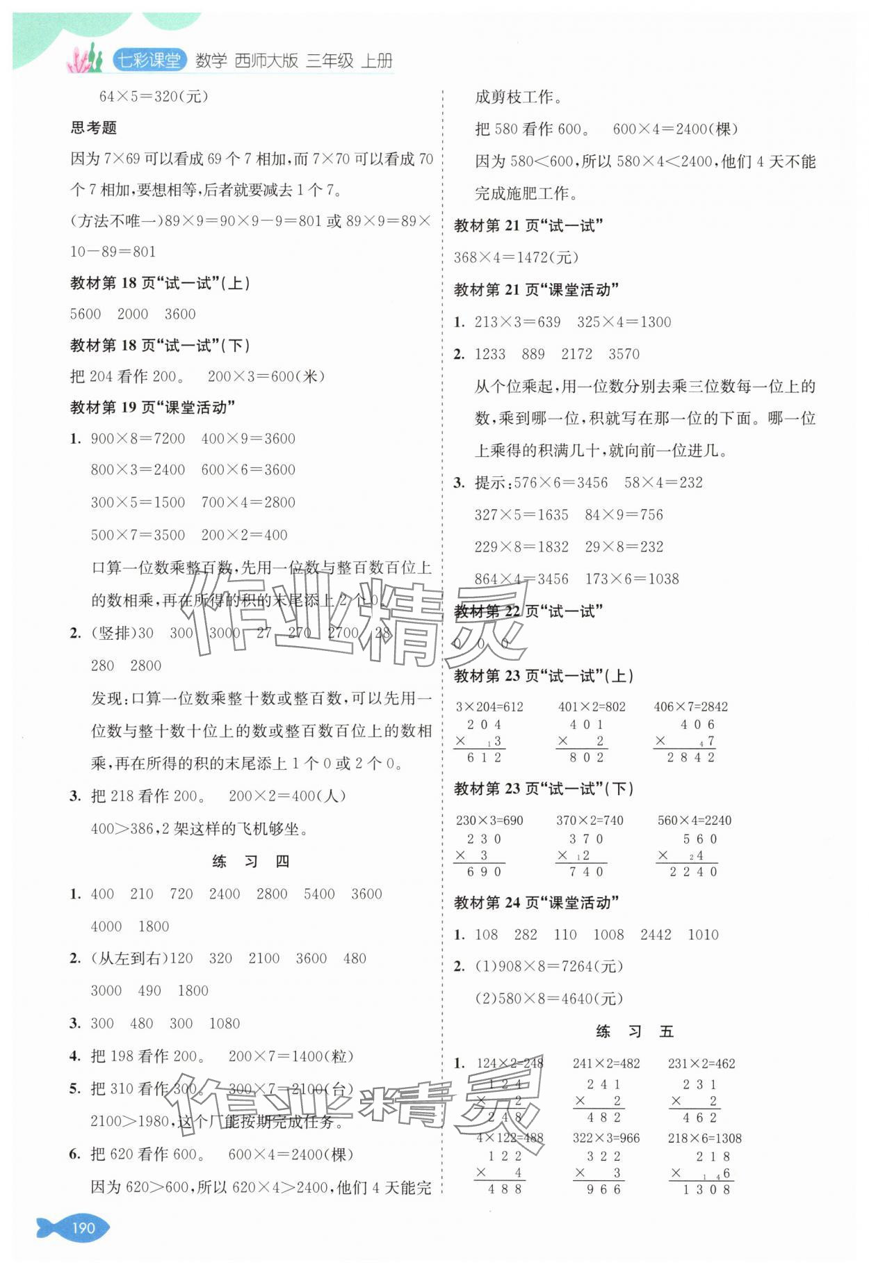 注:目前有些书本章节名称可能整理的还不是很完善,但都是按照顺序排列的,请同学们按照顺序仔细查找。练习册 2024年七彩课堂三年级数学上册西师大版 答案主要是用来给同学们做完题方便对答案用的,请勿直接抄袭。