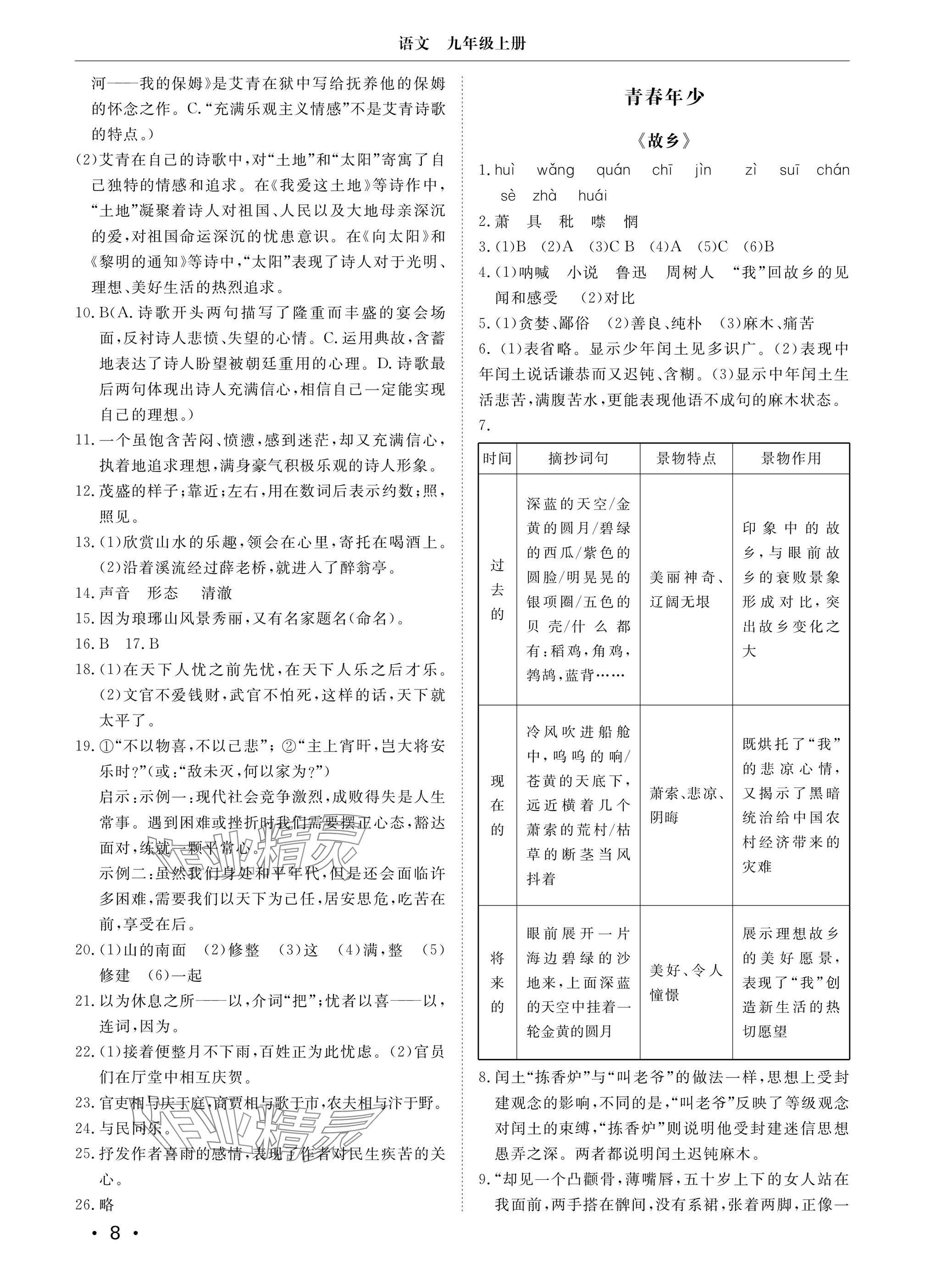 注:目前有些书本章节名称可能整理的还不是很完善,但都是按照顺序排列的,请同学们按照顺序仔细查找。练习册 2024年行知天下九年级语文上册人教版 答案主要是用来给同学们做完题方便对答案用的,请勿直接抄袭。