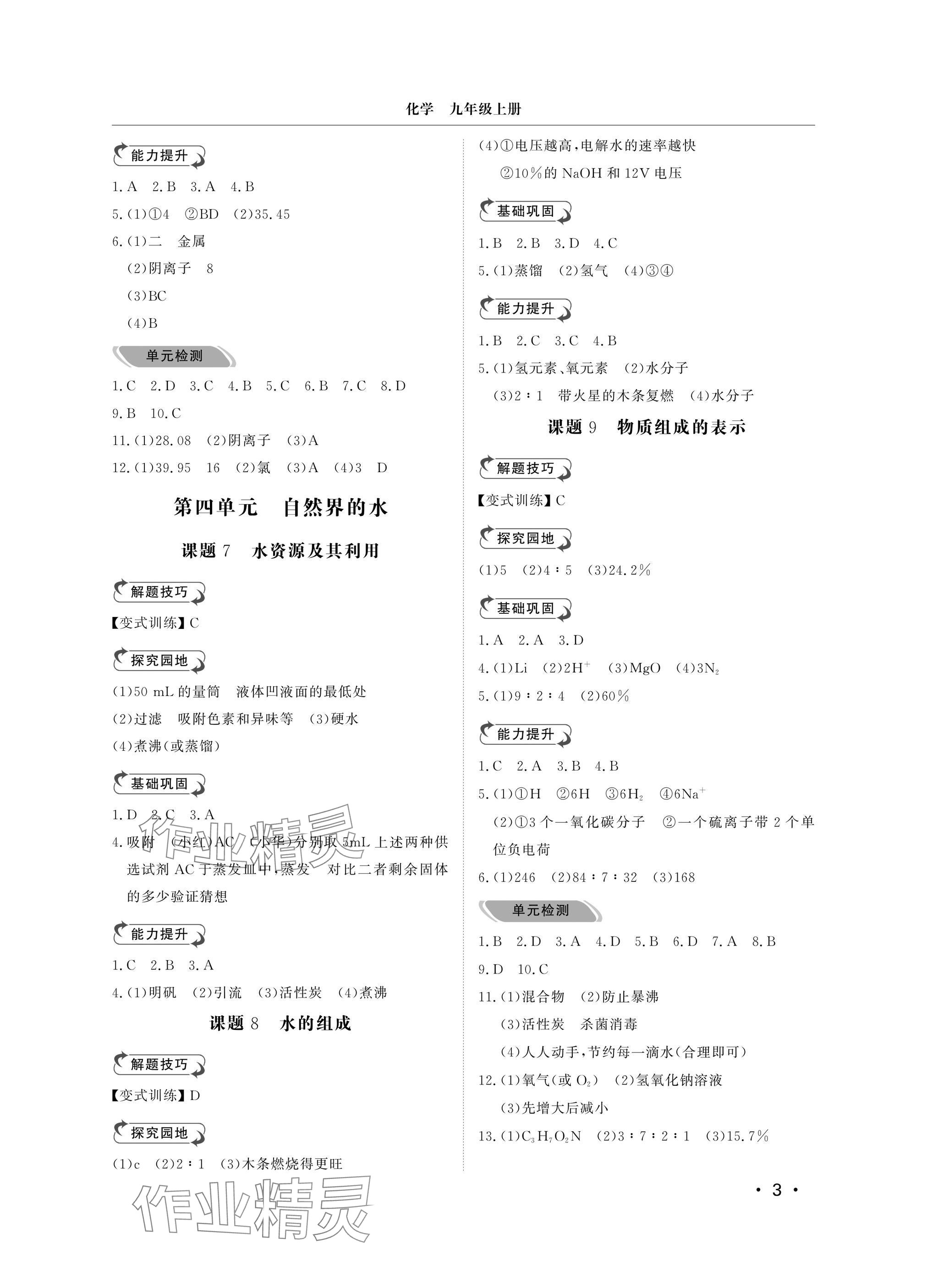 注:目前有些书本章节名称可能整理的还不是很完善,但都是按照顺序排列的,请同学们按照顺序仔细查找。练习册 2024年行知天下九年级化学上册人教版 答案主要是用来给同学们做完题方便对答案用的,请勿直接抄袭。