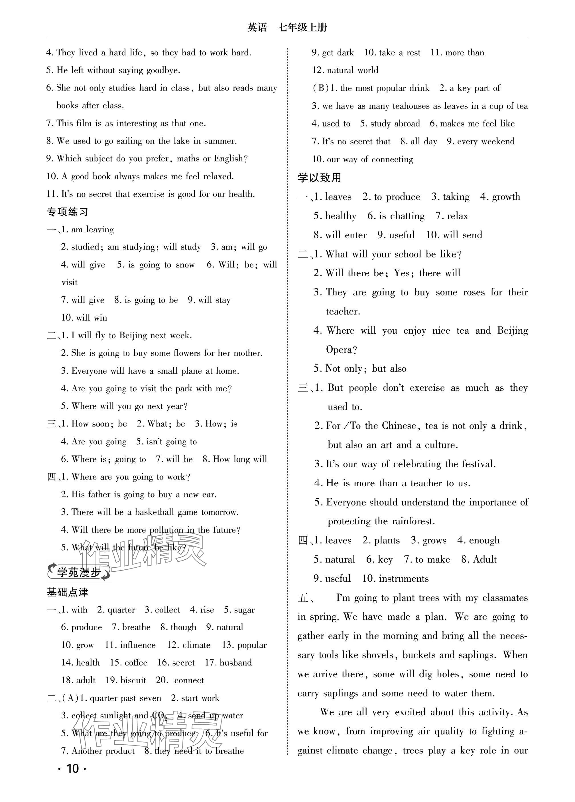 注:目前有些书本章节名称可能整理的还不是很完善,但都是按照顺序排列的,请同学们按照顺序仔细查找。练习册 2024年行知天下七年级英语上册外研版 答案主要是用来给同学们做完题方便对答案用的,请勿直接抄袭。