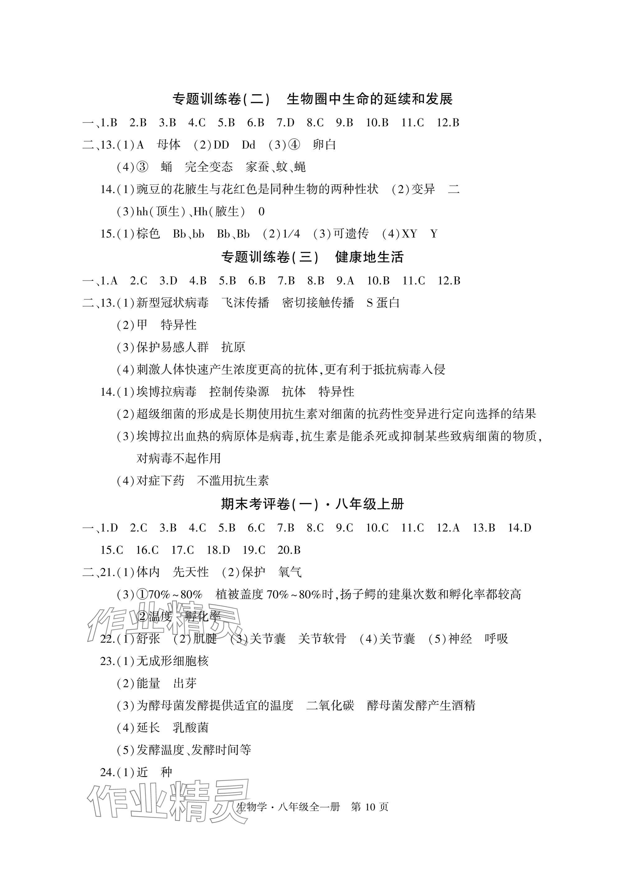 注:目前有些书本章节名称可能整理的还不是很完善,但都是按照顺序排列的,请同学们按照顺序仔细查找。练习册 2024年初中同步练习册自主测试卷八年级生物全一册人教版 答案主要是用来给同学们做完题方便对答案用的,请勿直接抄袭。
