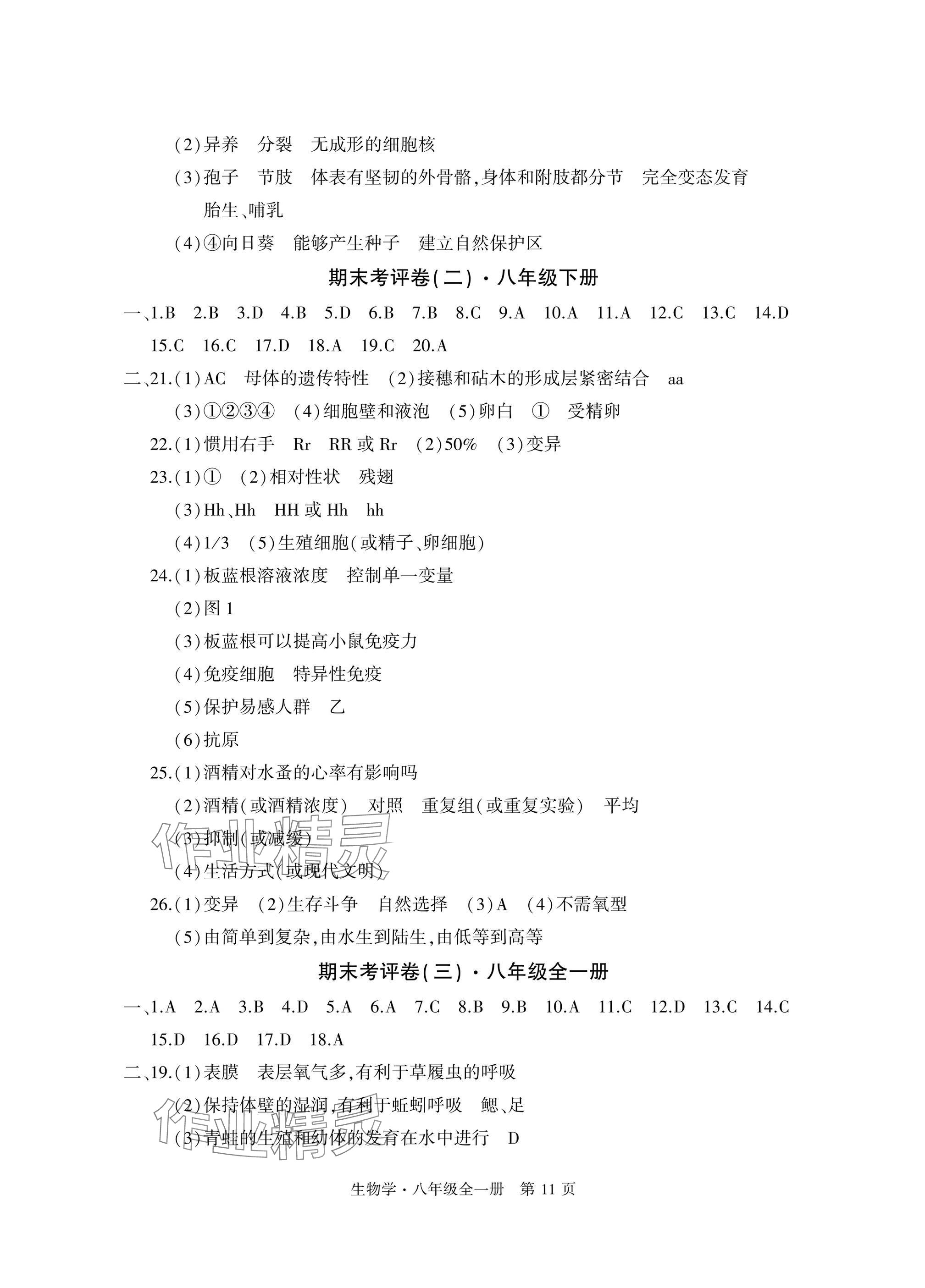 注:目前有些书本章节名称可能整理的还不是很完善,但都是按照顺序排列的,请同学们按照顺序仔细查找。练习册 2024年初中同步练习册自主测试卷八年级生物全一册人教版 答案主要是用来给同学们做完题方便对答案用的,请勿直接抄袭。