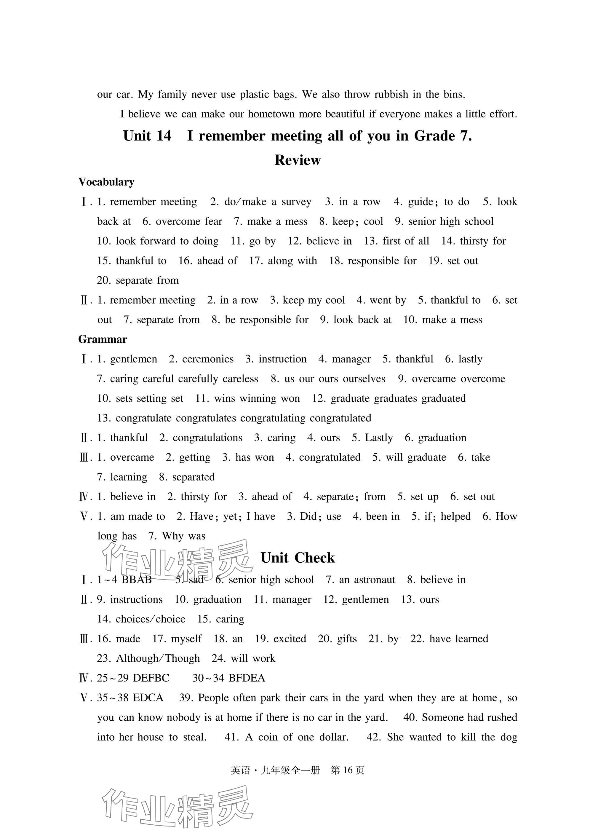 注:目前有些书本章节名称可能整理的还不是很完善,但都是按照顺序排列的,请同学们按照顺序仔细查找。练习册 2024年初中同步练习册自主测试卷九年级英语全一册人教版 答案主要是用来给同学们做完题方便对答案用的,请勿直接抄袭。