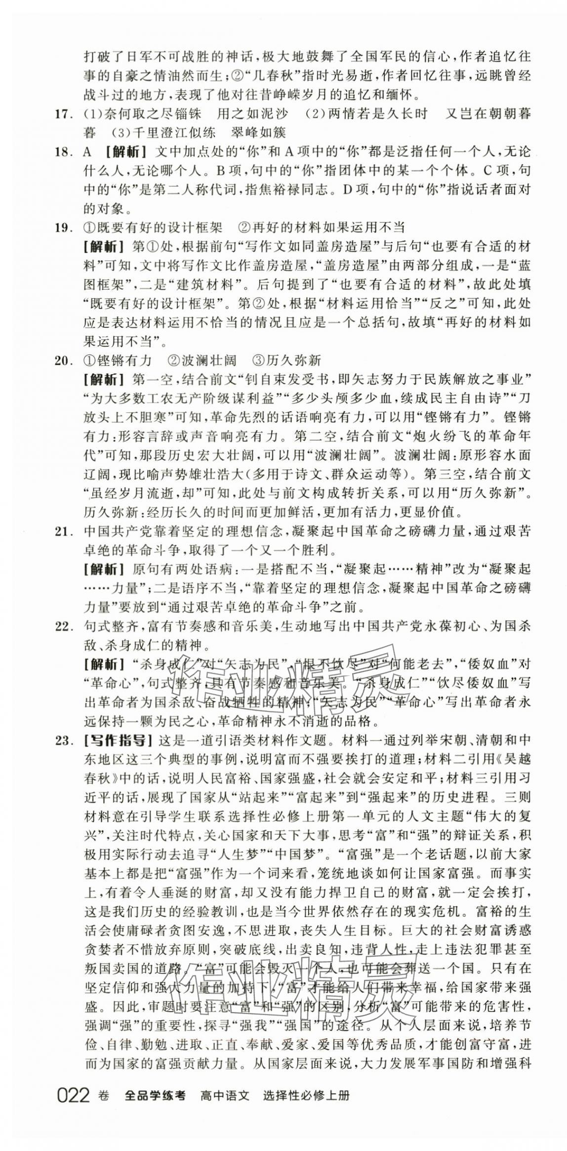 注:目前有些书本章节名称可能整理的还不是很完善,但都是按照顺序排列的,请同学们按照顺序仔细查找。练习册 2024年全品学练考高中语文选择性必修上册人教版 答案主要是用来给同学们做完题方便对答案用的,请勿直接抄袭。