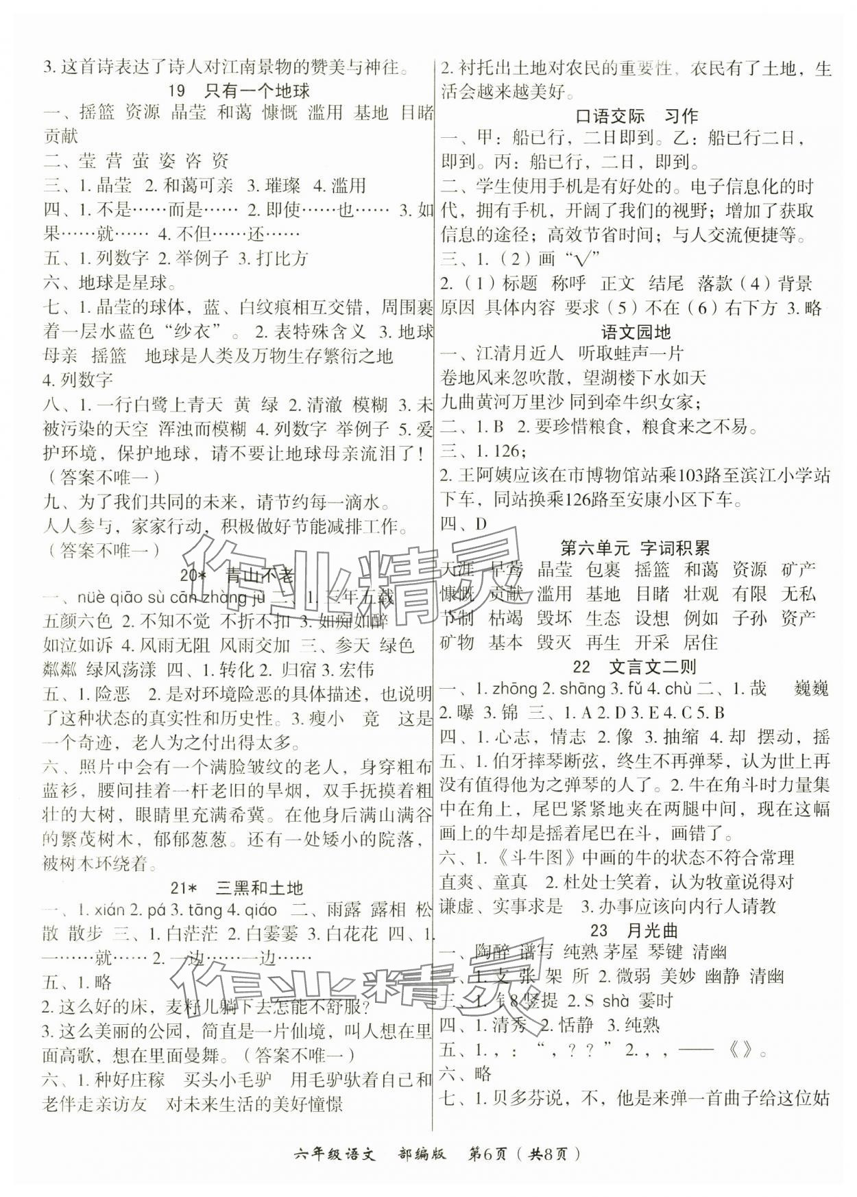 注:目前有些书本章节名称可能整理的还不是很完善,但都是按照顺序排列的,请同学们按照顺序仔细查找。练习册 2024年高效课堂8分钟六年级语文上册人教版 答案主要是用来给同学们做完题方便对答案用的,请勿直接抄袭。
