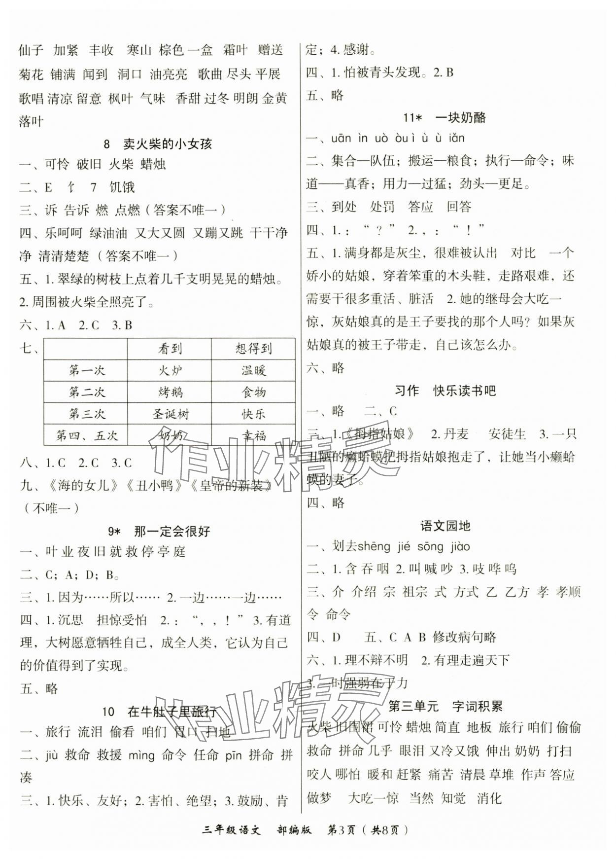 注:目前有些书本章节名称可能整理的还不是很完善,但都是按照顺序排列的,请同学们按照顺序仔细查找。练习册 2024年高效课堂8分钟三年级语文上册人教版 答案主要是用来给同学们做完题方便对答案用的,请勿直接抄袭。
