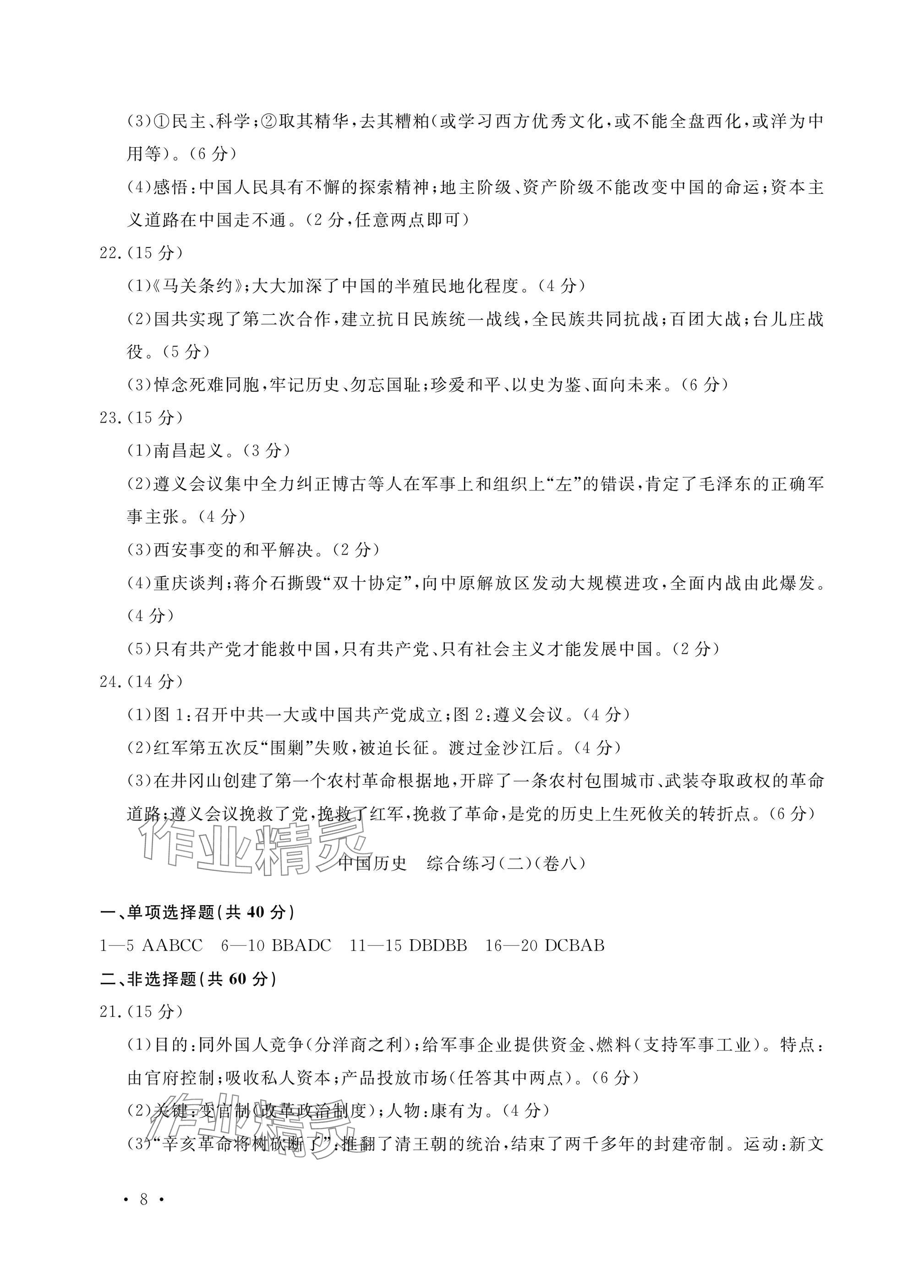 注:目前有些书本章节名称可能整理的还不是很完善,但都是按照顺序排列的,请同学们按照顺序仔细查找。练习册 2024年单元评价卷宁波出版社八年级历史上册人教版 答案主要是用来给同学们做完题方便对答案用的,请勿直接抄袭。