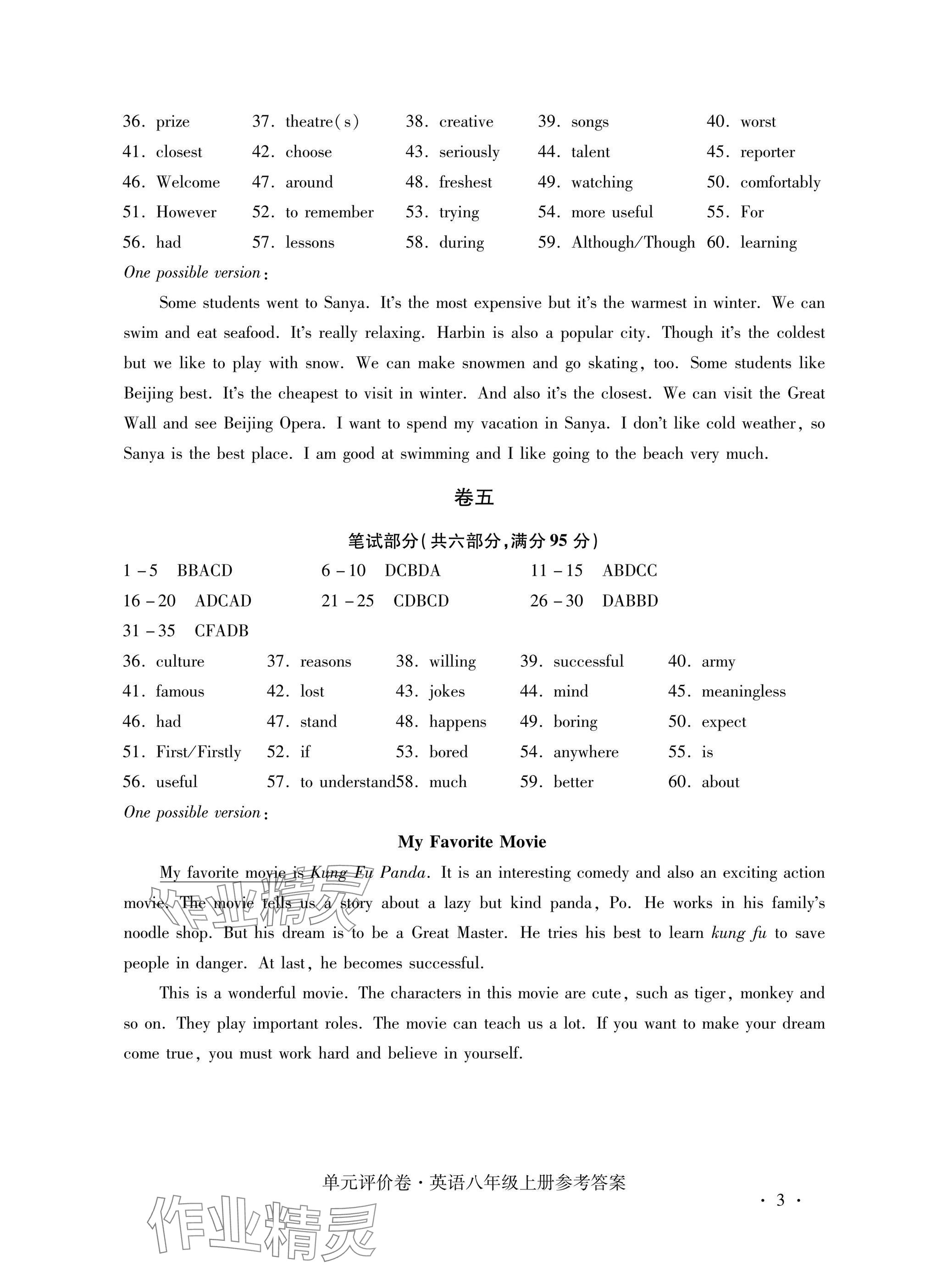 注:目前有些书本章节名称可能整理的还不是很完善,但都是按照顺序排列的,请同学们按照顺序仔细查找。练习册 2024年单元评价卷宁波出版社八年级英语上册人教版 答案主要是用来给同学们做完题方便对答案用的,请勿直接抄袭。