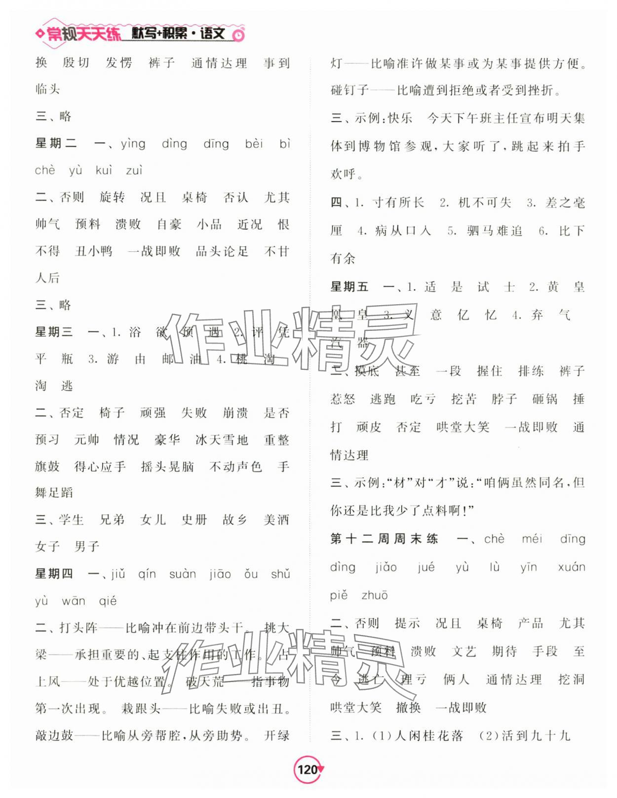 注:目前有些书本章节名称可能整理的还不是很完善,但都是按照顺序排列的,请同学们按照顺序仔细查找。练习册 2024年常规天天练默写加积累四年级语文上册人教版 答案主要是用来给同学们做完题方便对答案用的,请勿直接抄袭。