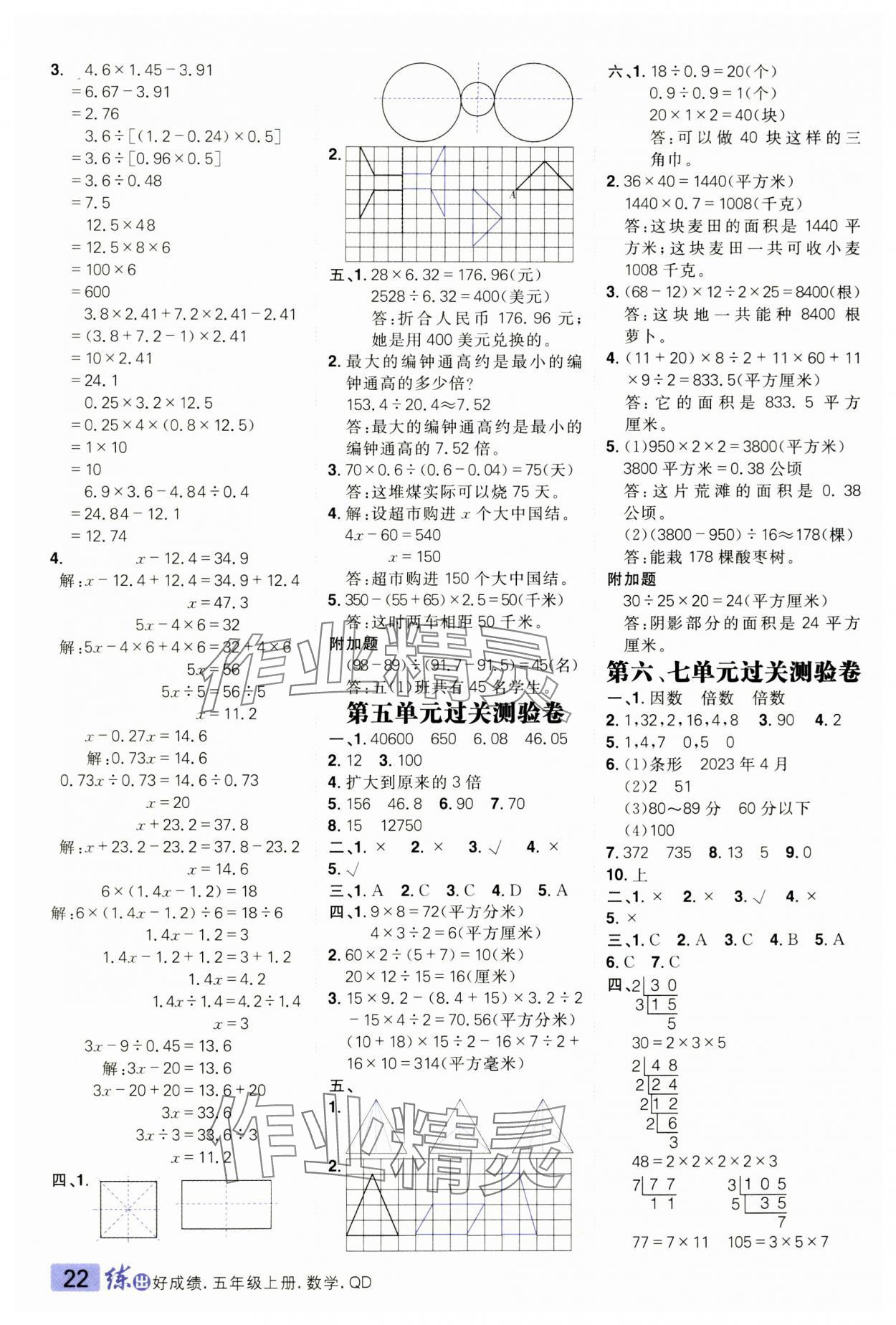 注:目前有些书本章节名称可能整理的还不是很完善,但都是按照顺序排列的,请同学们按照顺序仔细查找。练习册 2024年练出好成绩五年级数学上册青岛版 答案主要是用来给同学们做完题方便对答案用的,请勿直接抄袭。