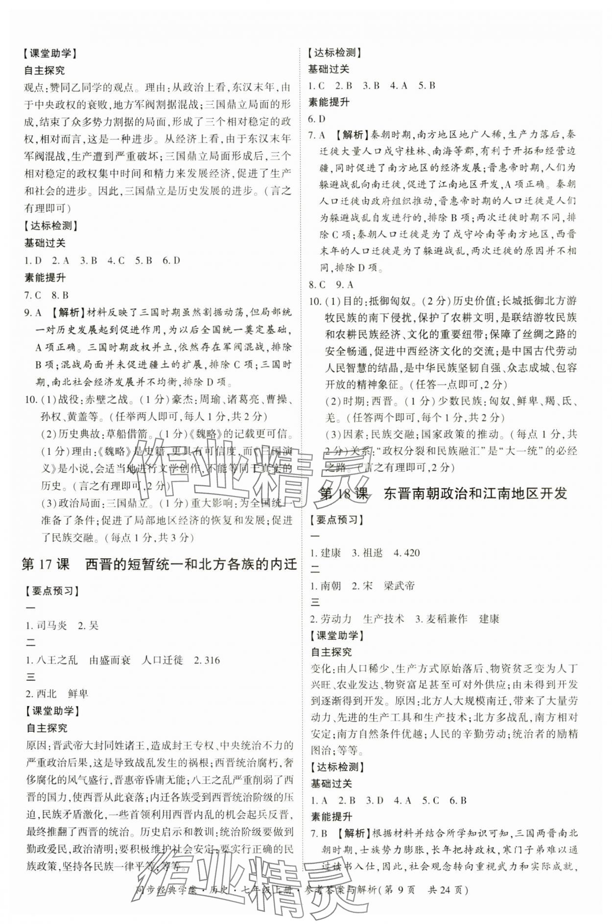 注:目前有些书本章节名称可能整理的还不是很完善,但都是按照顺序排列的,请同学们按照顺序仔细查找。练习册 2024年同步经典学案七年级历史上册人教版 答案主要是用来给同学们做完题方便对答案用的,请勿直接抄袭。
