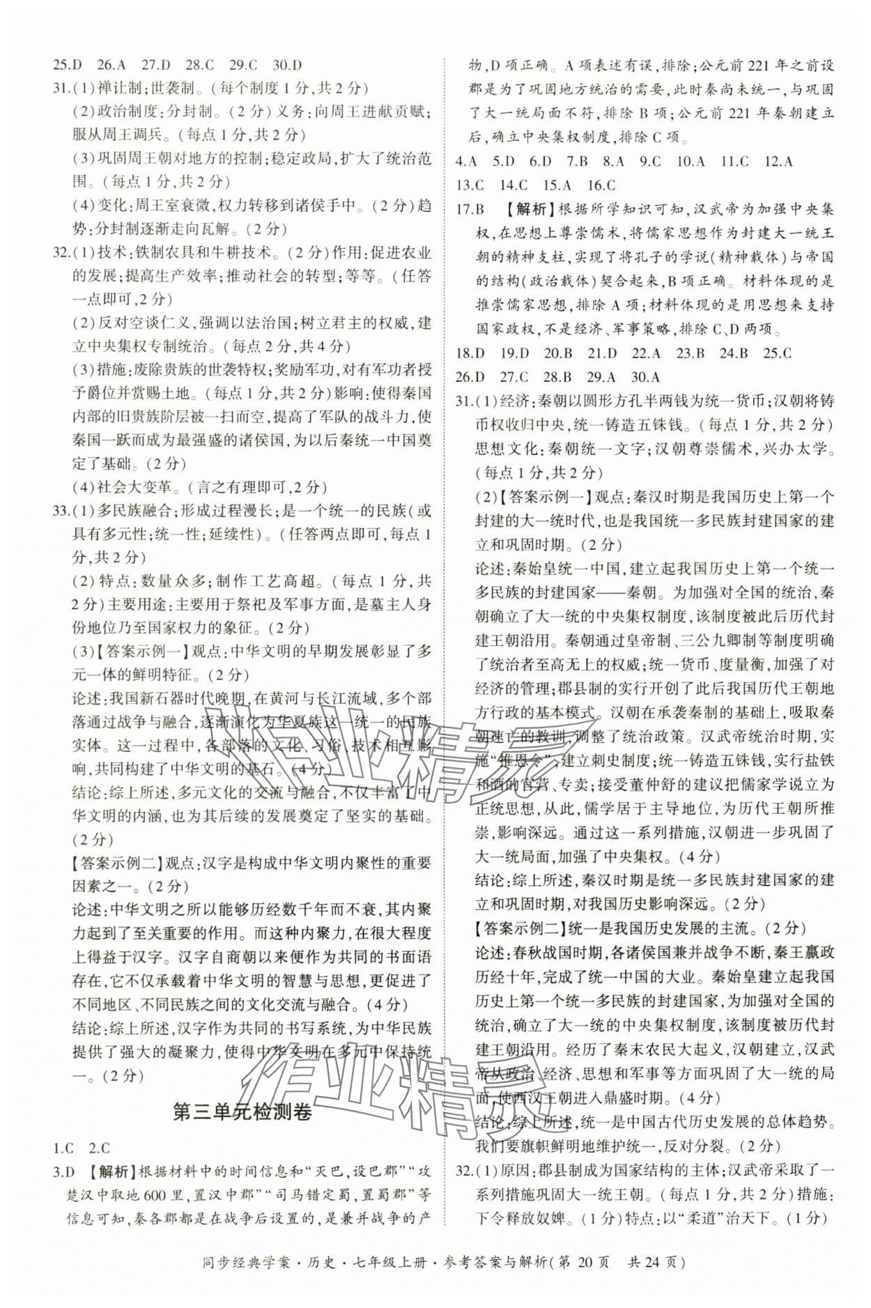 注:目前有些书本章节名称可能整理的还不是很完善,但都是按照顺序排列的,请同学们按照顺序仔细查找。练习册 2024年同步经典学案七年级历史上册人教版 答案主要是用来给同学们做完题方便对答案用的,请勿直接抄袭。