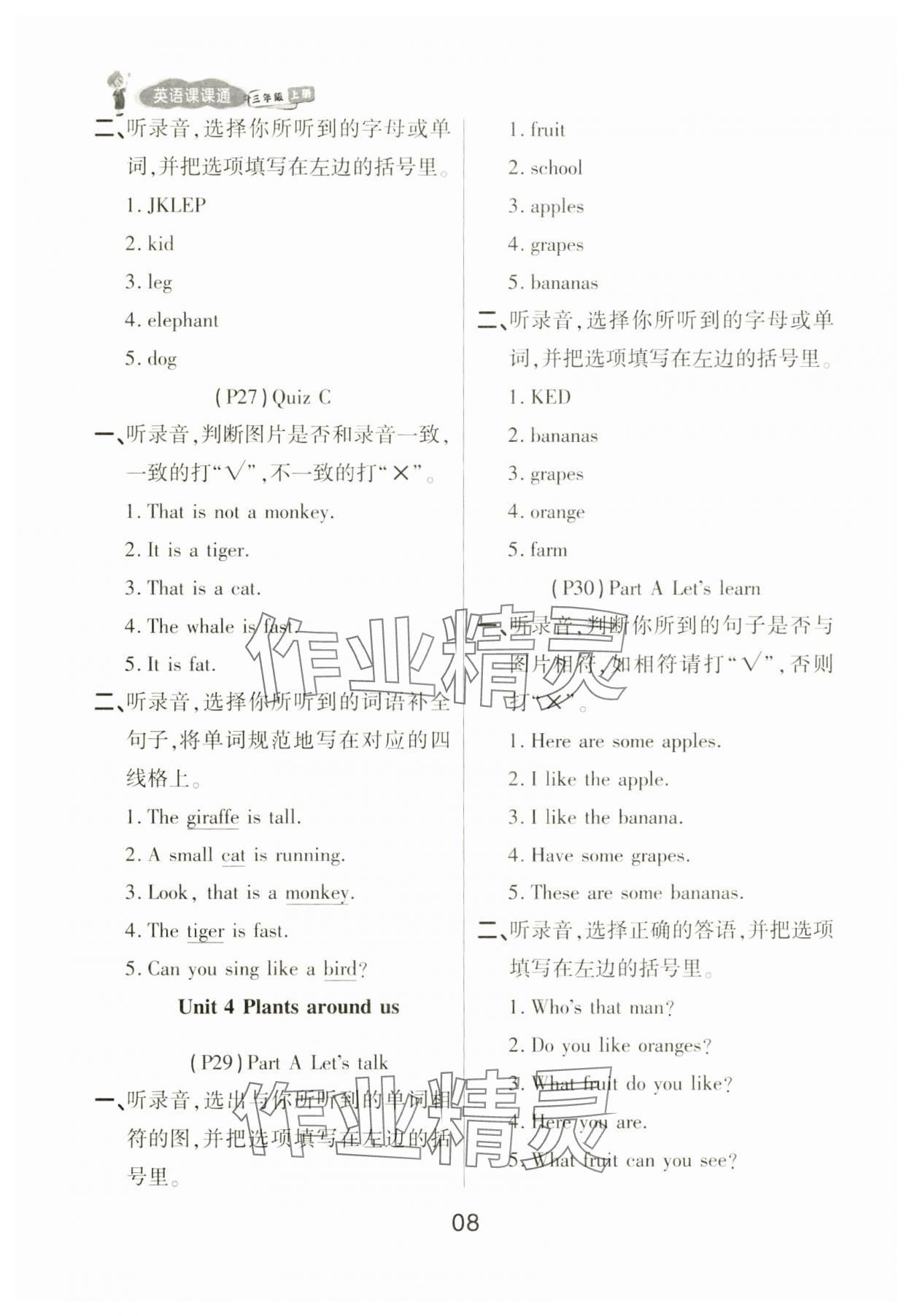 注:目前有些书本章节名称可能整理的还不是很完善,但都是按照顺序排列的,请同学们按照顺序仔细查找。练习册 2024年名师英语课课通三年级英语上册人教版顺德专版 答案主要是用来给同学们做完题方便对答案用的,请勿直接抄袭。