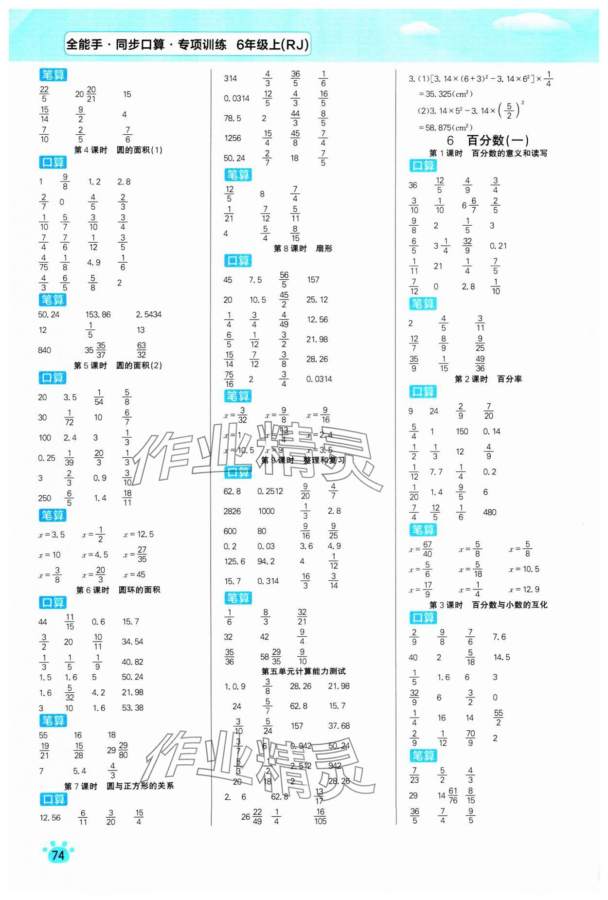 2024年全能手同步口算专项训练六年级数学上册人教版
