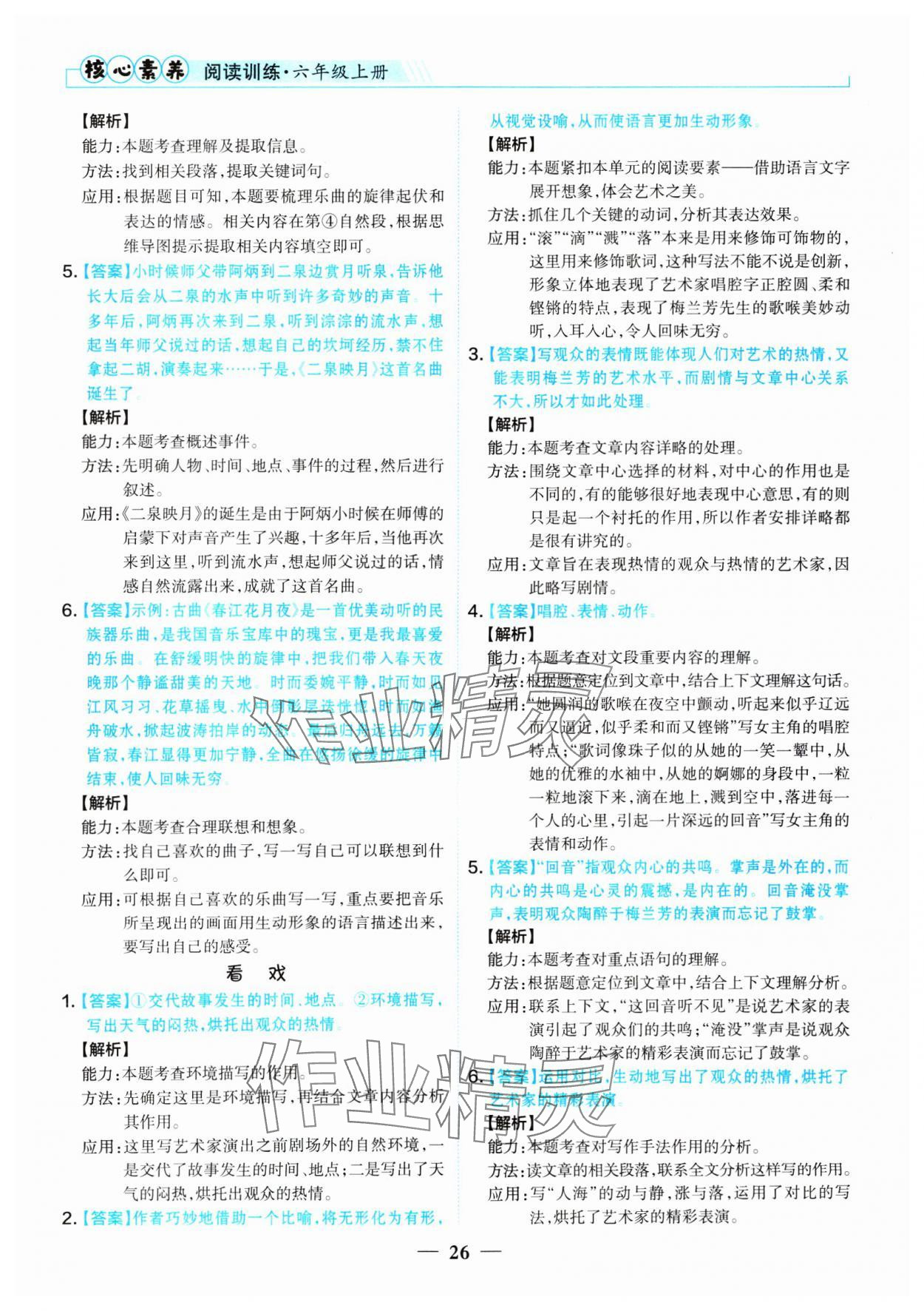 注:目前有些书本章节名称可能整理的还不是很完善,但都是按照顺序排列的,请同学们按照顺序仔细查找。练习册 2024年小学语文核心素养阅读训练六年级上册人教版 答案主要是用来给同学们做完题方便对答案用的,请勿直接抄袭。