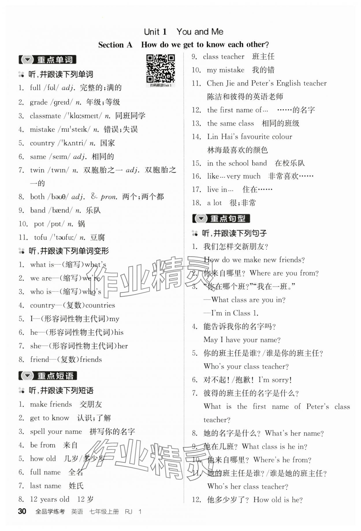 注:目前有些书本章节名称可能整理的还不是很完善,但都是按照顺序排列的,请同学们按照顺序仔细查找。练习册 2024年全品学练考七年级英语上册人教版陕西专版 答案主要是用来给同学们做完题方便对答案用的,请勿直接抄袭。