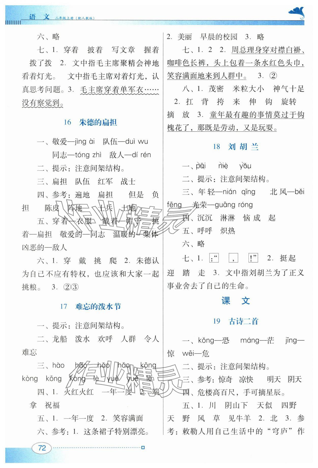 注:目前有些书本章节名称可能整理的还不是很完善,但都是按照顺序排列的,请同学们按照顺序仔细查找。练习册 2024年南方新课堂金牌学案二年级语文上册人教版 答案主要是用来给同学们做完题方便对答案用的,请勿直接抄袭。