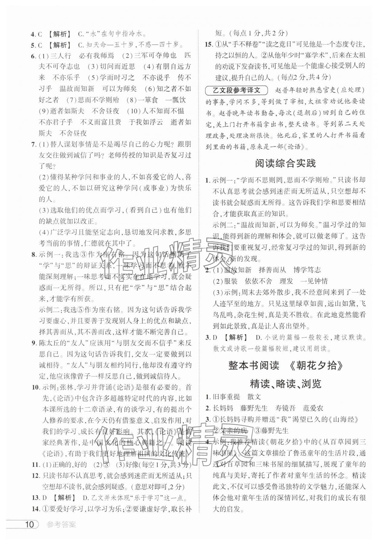 2024年鼎成中考活页好题七年级语文上册人教版 参考答案第10页
