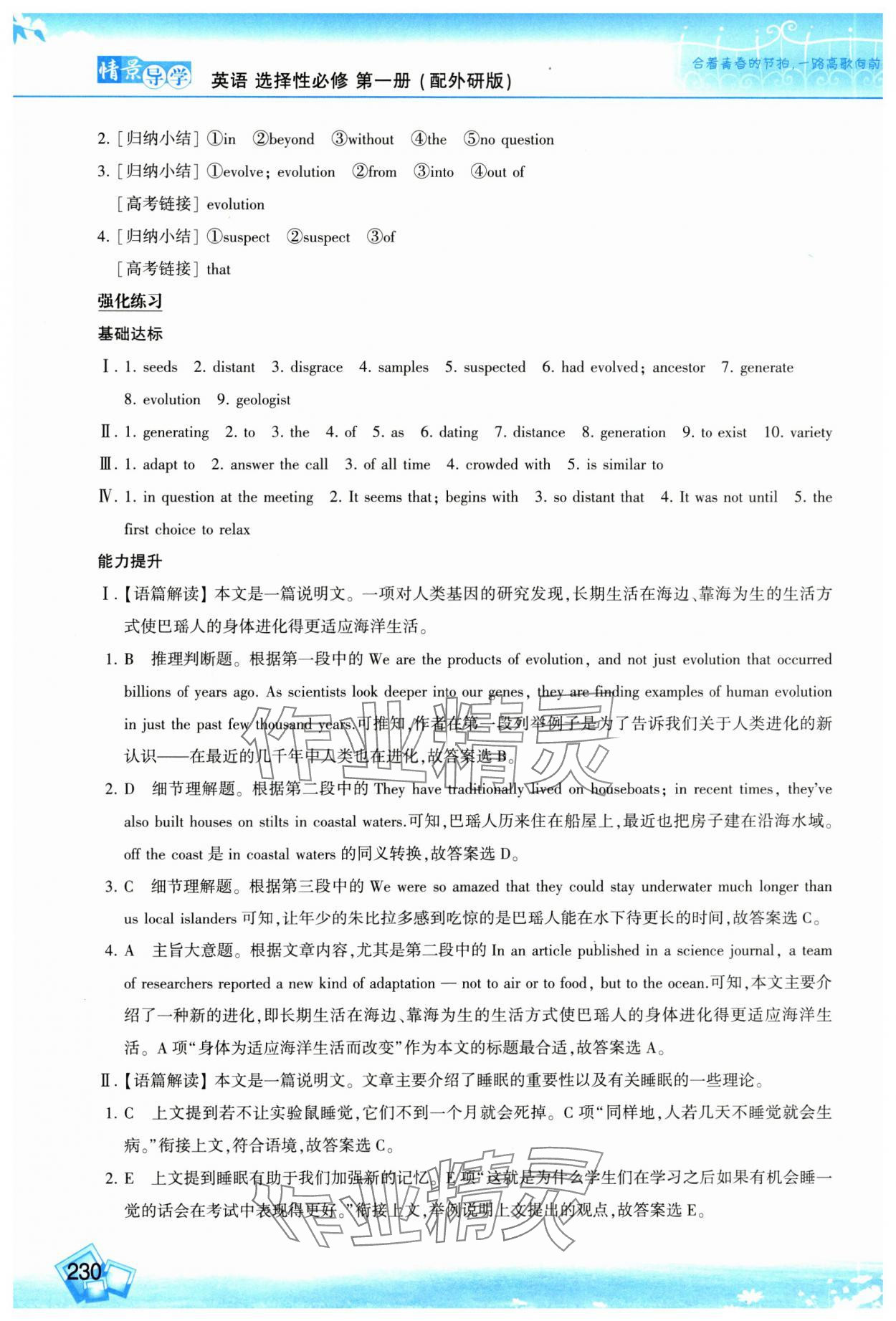 注:目前有些书本章节名称可能整理的还不是很完善,但都是按照顺序排列的,请同学们按照顺序仔细查找。练习册 2024年情景导学高中英语选择性必修第一册外研版 答案主要是用来给同学们做完题方便对答案用的,请勿直接抄袭。
