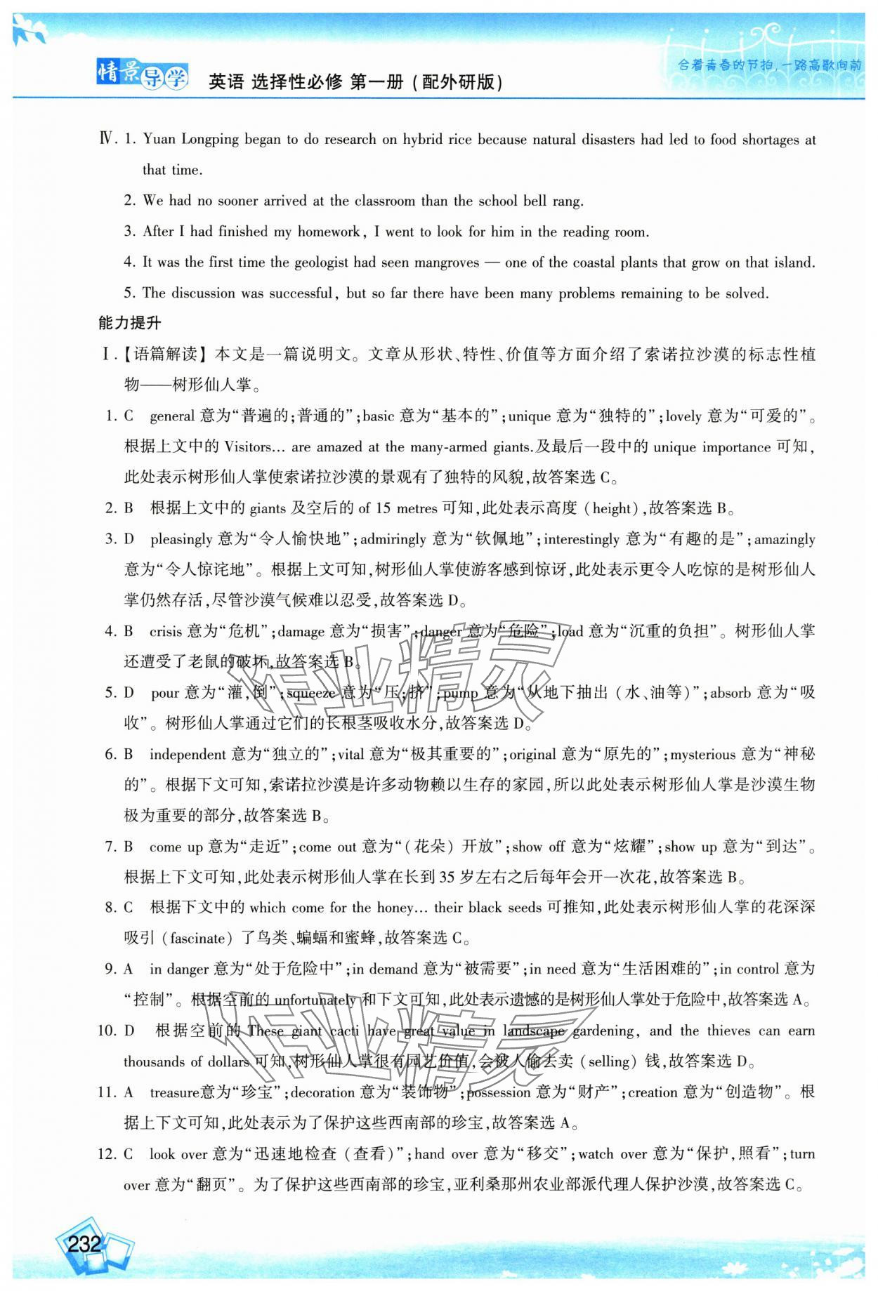注:目前有些书本章节名称可能整理的还不是很完善,但都是按照顺序排列的,请同学们按照顺序仔细查找。练习册 2024年情景导学高中英语选择性必修第一册外研版 答案主要是用来给同学们做完题方便对答案用的,请勿直接抄袭。