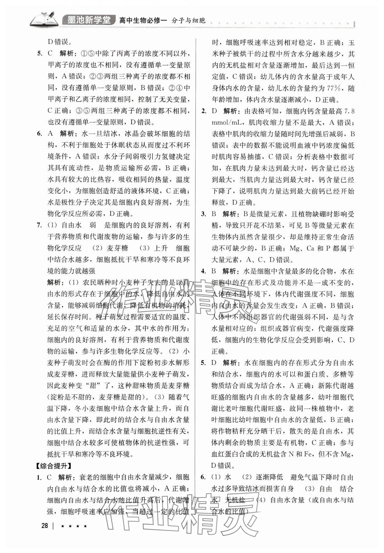 注:目前有些书本章节名称可能整理的还不是很完善,但都是按照顺序排列的,请同学们按照顺序仔细查找。练习册 2024年墨池新学堂高中生物必修1人教版 答案主要是用来给同学们做完题方便对答案用的,请勿直接抄袭。