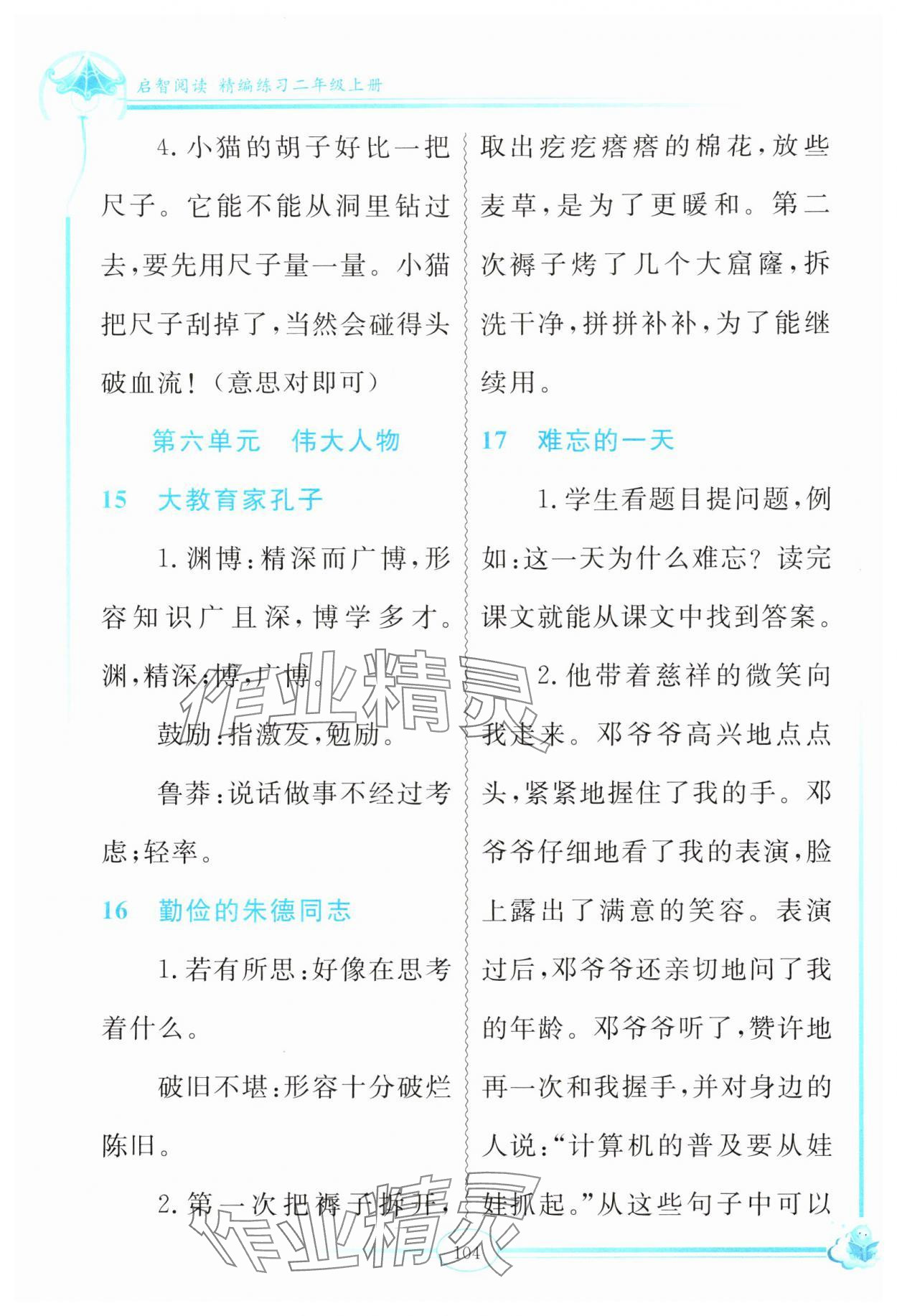 注:目前有些书本章节名称可能整理的还不是很完善,但都是按照顺序排列的,请同学们按照顺序仔细查找。练习册 2024年启智阅读精编练习二年级语文上册人教版 答案主要是用来给同学们做完题方便对答案用的,请勿直接抄袭。