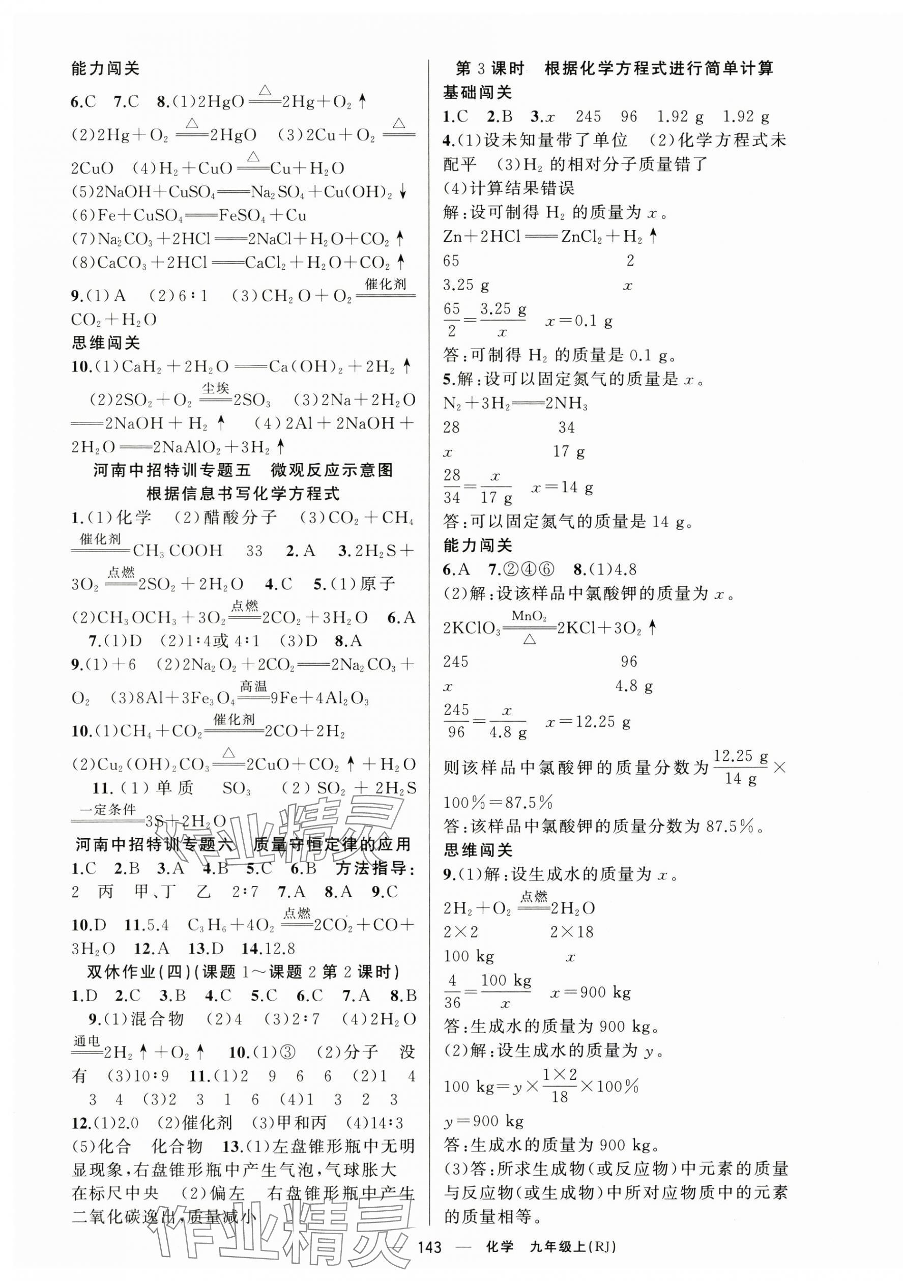 2024年同步训练100分闯关九年级化学上册人教版河南专版