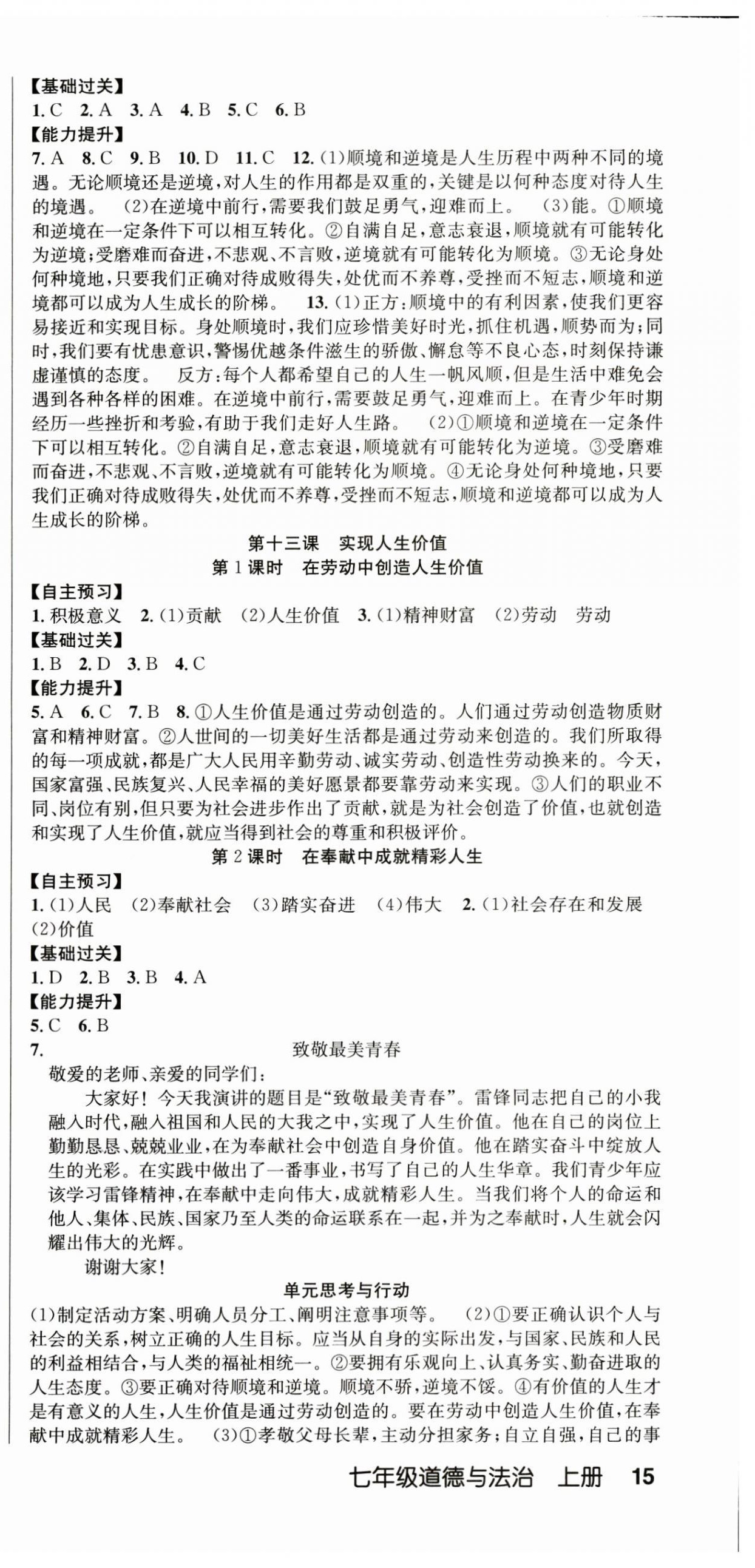 注:目前有些书本章节名称可能整理的还不是很完善,但都是按照顺序排列的,请同学们按照顺序仔细查找。练习册 2024年课时夺冠七年级道德与法治上册人教版 答案主要是用来给同学们做完题方便对答案用的,请勿直接抄袭。