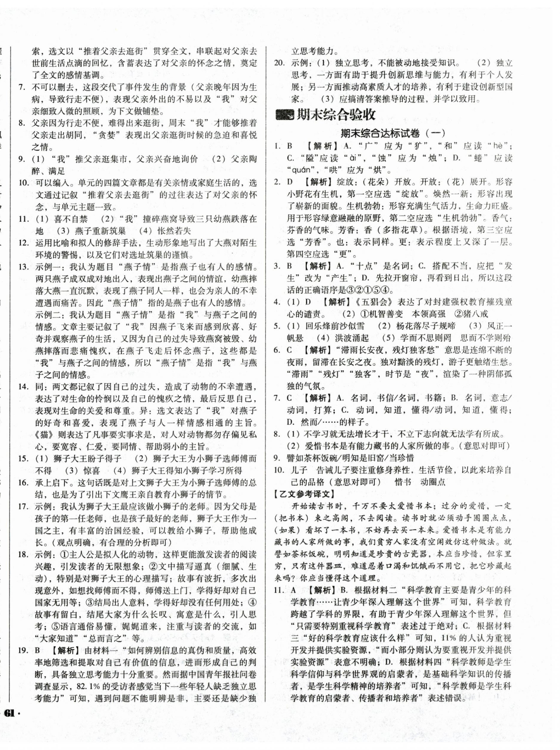 注:目前有些书本章节名称可能整理的还不是很完善,但都是按照顺序排列的,请同学们按照顺序仔细查找。练习册 2024年单元加期末复习与测试七年级语文上册人教版 答案主要是用来给同学们做完题方便对答案用的,请勿直接抄袭。