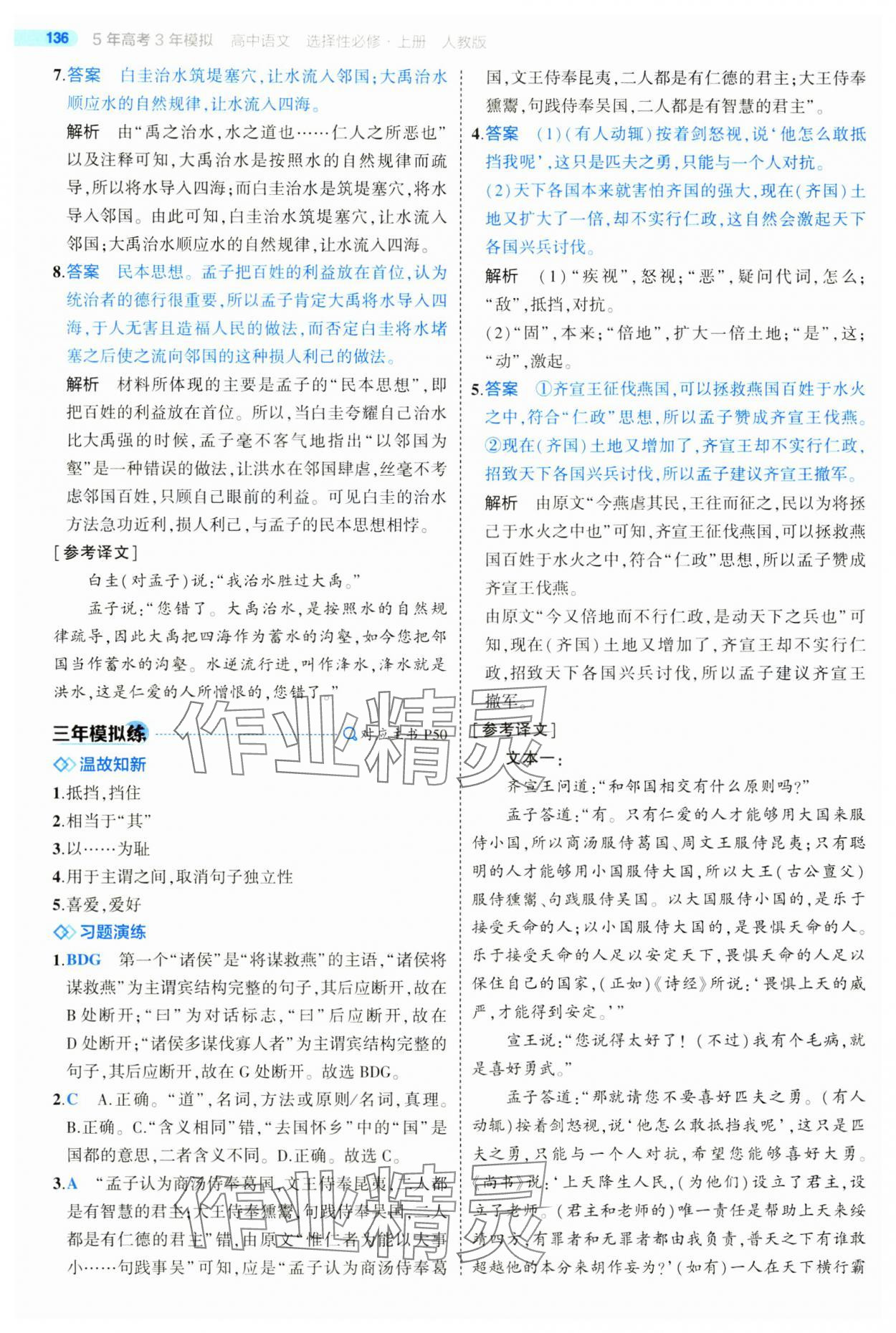 注:目前有些书本章节名称可能整理的还不是很完善,但都是按照顺序排列的,请同学们按照顺序仔细查找。练习册 2024年5年高考3年模拟高中语文选择性必修上册人教版 答案主要是用来给同学们做完题方便对答案用的,请勿直接抄袭。