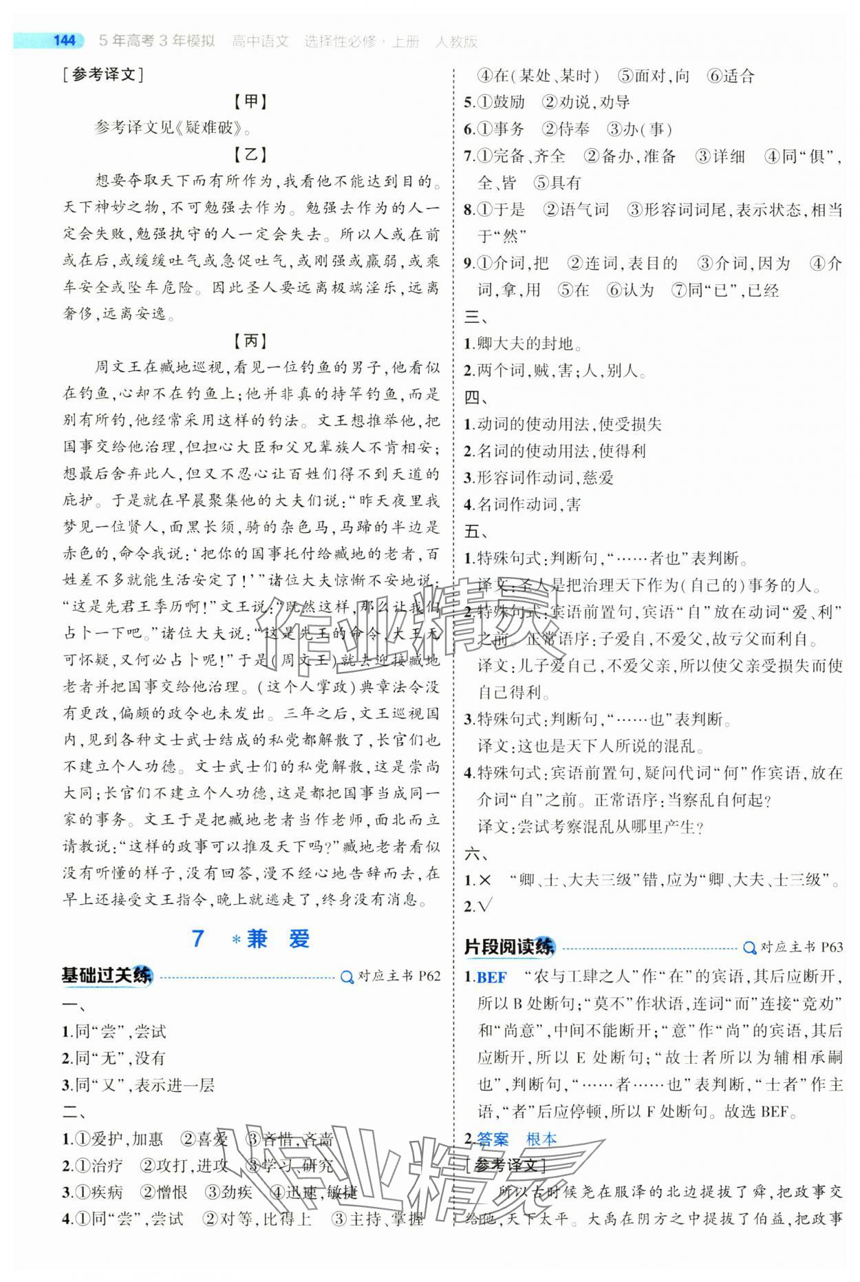 注:目前有些书本章节名称可能整理的还不是很完善,但都是按照顺序排列的,请同学们按照顺序仔细查找。练习册 2024年5年高考3年模拟高中语文选择性必修上册人教版 答案主要是用来给同学们做完题方便对答案用的,请勿直接抄袭。