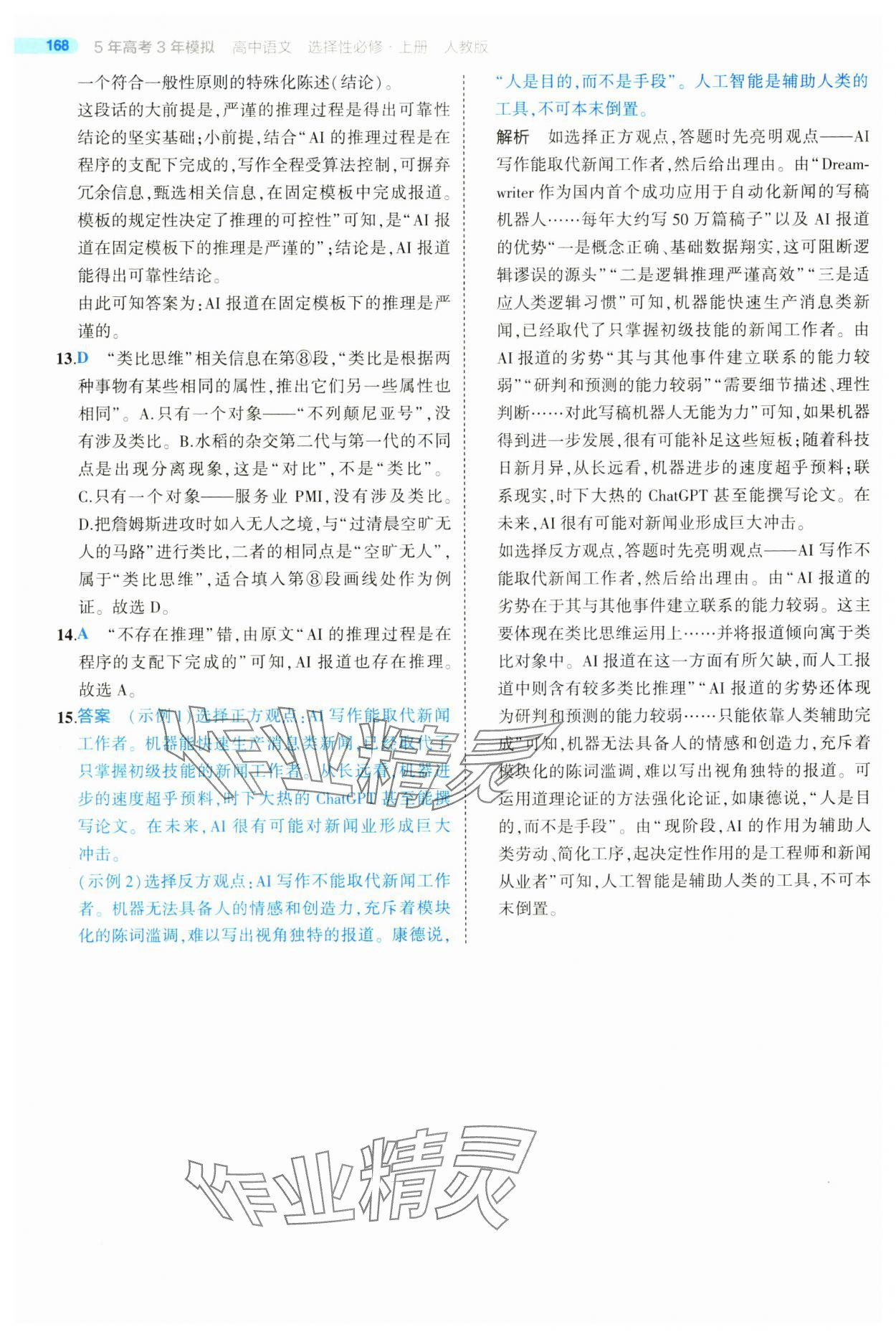 注:目前有些书本章节名称可能整理的还不是很完善,但都是按照顺序排列的,请同学们按照顺序仔细查找。练习册 2024年5年高考3年模拟高中语文选择性必修上册人教版 答案主要是用来给同学们做完题方便对答案用的,请勿直接抄袭。